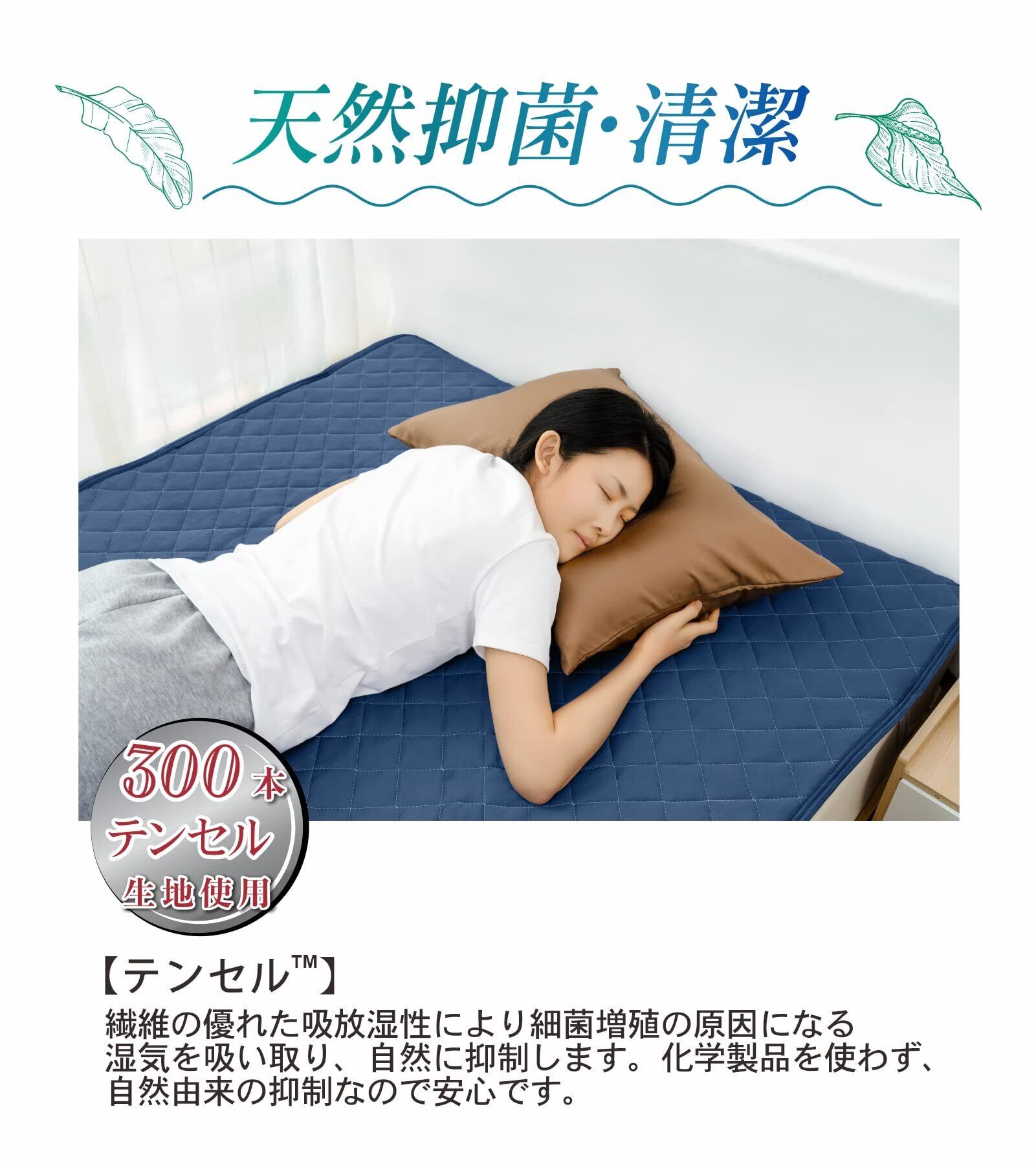 【接触涼感・丸洗い可能】テンセルは独特のフィプリル(極細の繊維)構造を持っているので、コットンよりも優れた温湿度制御性があり、いつもサラサラ。しっとりと柔らかい手触りを楽しめます。ハイクラス感の漂う光沢が、優雅な空間へと誘います。手洗いのみシルクと比較してもテンセルは洗濯機で使用便利。