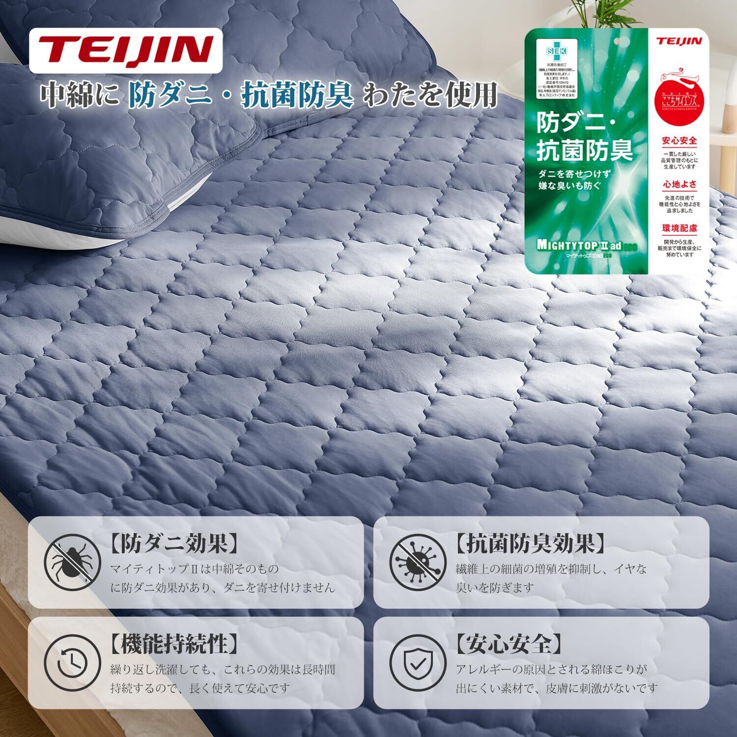 この敷きパッドは、独自の中綿素材を採用しており、抜群の吸湿速乾性を備えています。汗をしっかり吸収し、べたつきを防いでくれるため、いつでも爽やかな眠りを提供します。特に暑い夜でも、さっぱりとした肌触りで快適にお休みいただけます。