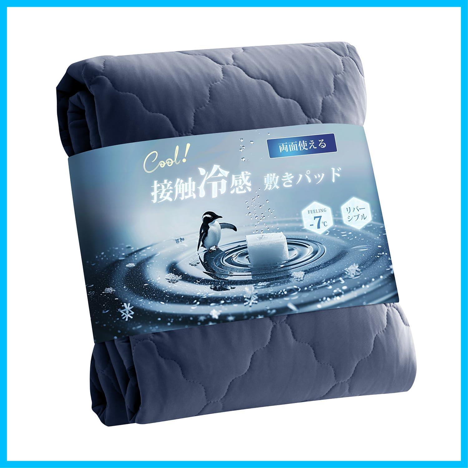 Atokazo 接触冷感 敷きパッド ダブル リバーシブル 両面使える 夏 夏用 春 秋 オールシーズン ひんやり Q-MAX0.483 強冷感 洗える 吸湿速乾 中綿 クール ベッドパッド ベッドシーツ 冷感パッド 敷パット 敷きパット 敷パッド しきぱっと(140X200cm, ネイビー)
