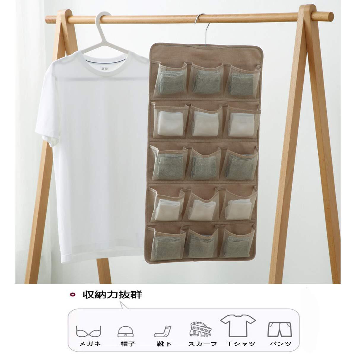【数量限定】Feifyw【1枚組】 下着収納 ウォールポケット吊り下げ収納 壁掛け 収納バッグ 衣類 下着 · 靴下 · パンツ · ブラジャー · ネクタイ 両面 ハンガー クリアポーチ 収納ラック オックスフォード生地 (カーキ)