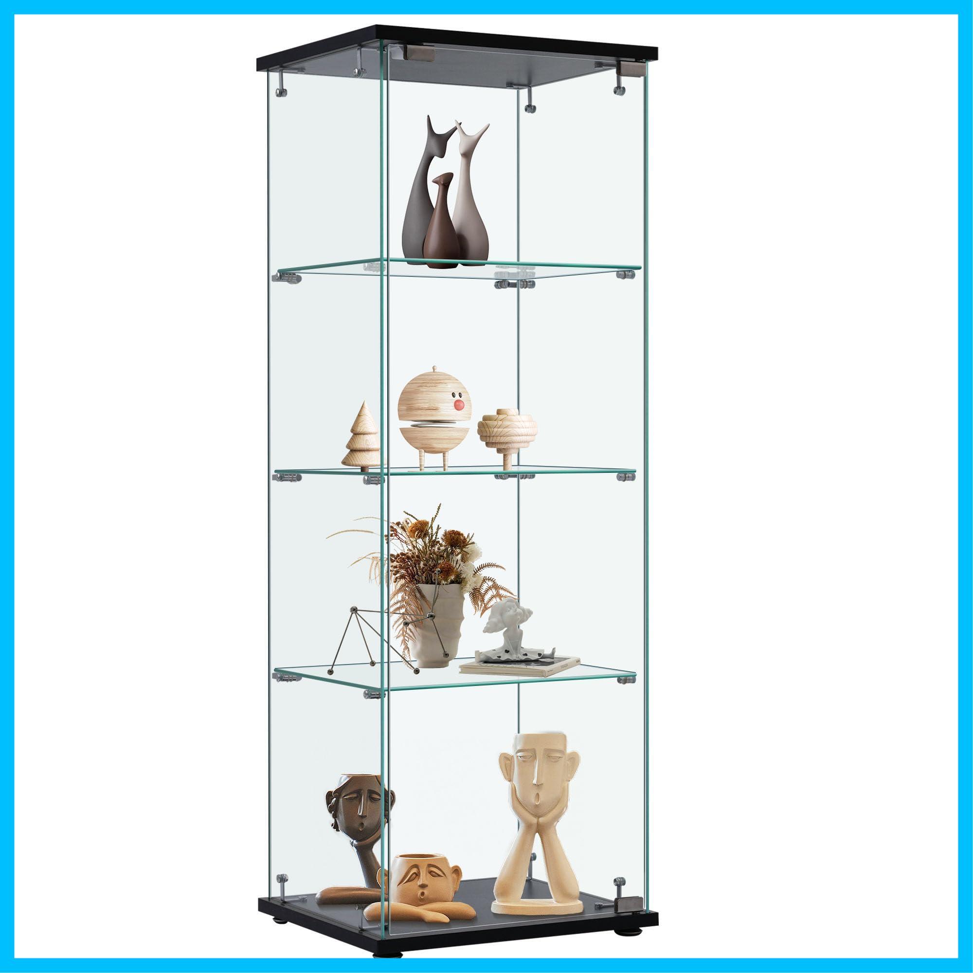 【4段-高さ120cm】OSJ コレクションケース ガラスディスプレイキャビネット フィギュアケース ブラック キャビネット 強化ガラス 全面ガラス クリア 組立商品 幅42.5×奥行36.5×高さ120cm リビングルーム 透明 大型