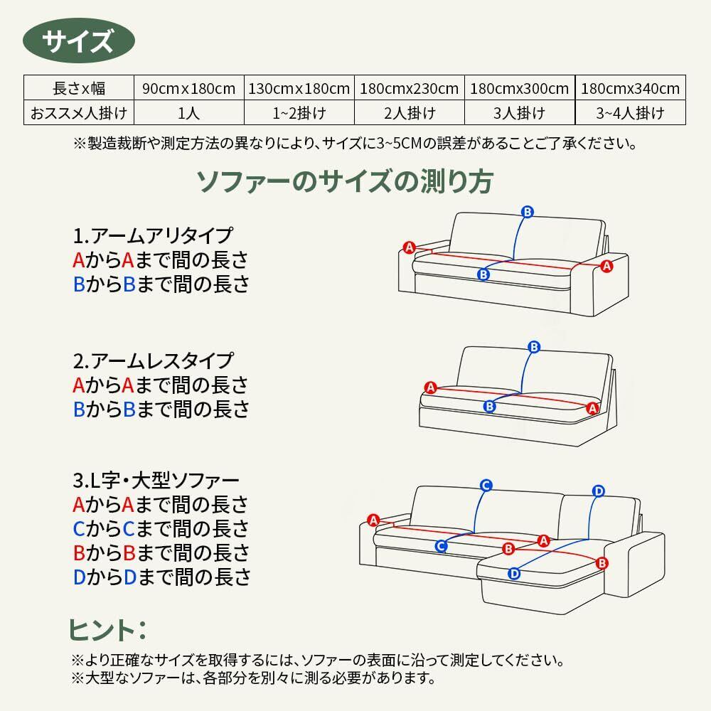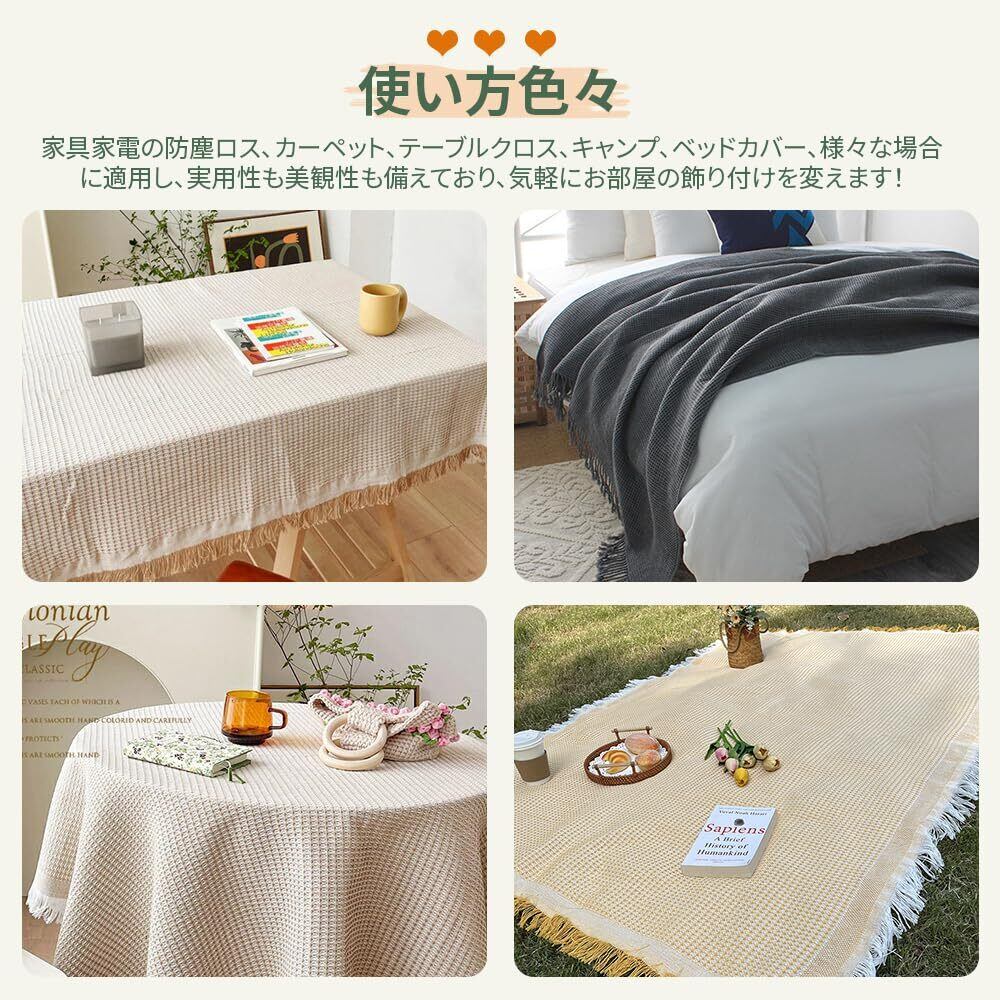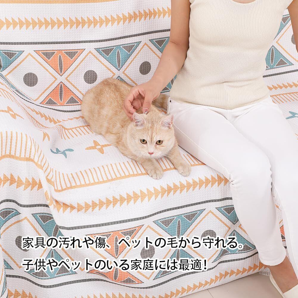 このソファーカバーはソファだけでなく、ベッドカバーやテーブルクロス、ブランケットとしてもご使用いただけます。230×180cmのサイズは2人掛けソファにぴったりで、さまざまなシーンで大活躍します。