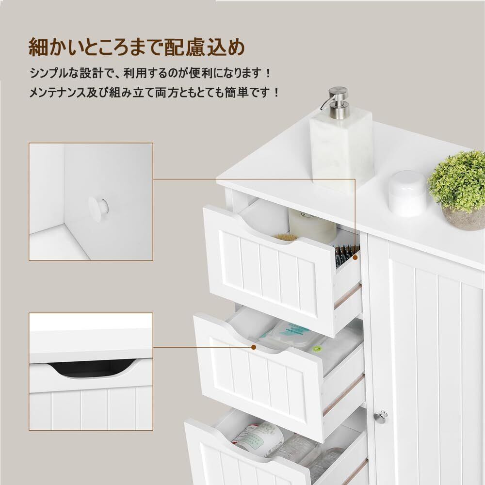 【使いやすさ】:キャビネットのドアには、簡単に開閉できる磁気装置が装備されています。付属のヒンジは耐久性が高く、ドアパネルには丸いノブが付いています。また、各引き出しには、取り扱いが簡単で美しさを保つために、フロントパネルに小さな凹型の開口部があります、開閉を簡単にでき、便利です。