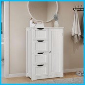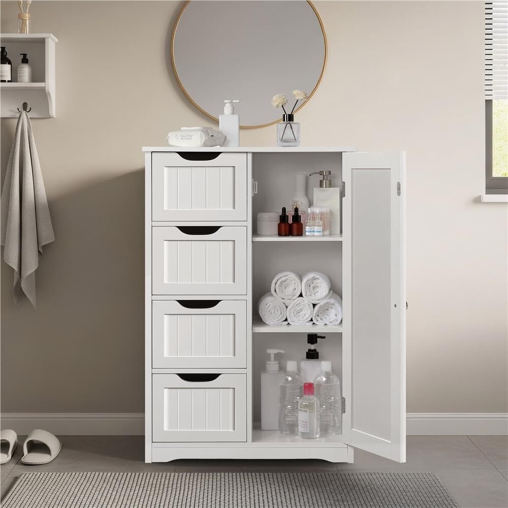 【収納力抜群】:卓上、引き出し4つ、および3段棚板のあるキャビネットは、一般的な家庭用品をうまく収納し、浴室、居間、キッチンなど、収納が必要な場所にぴったりできる実用的な家具です。