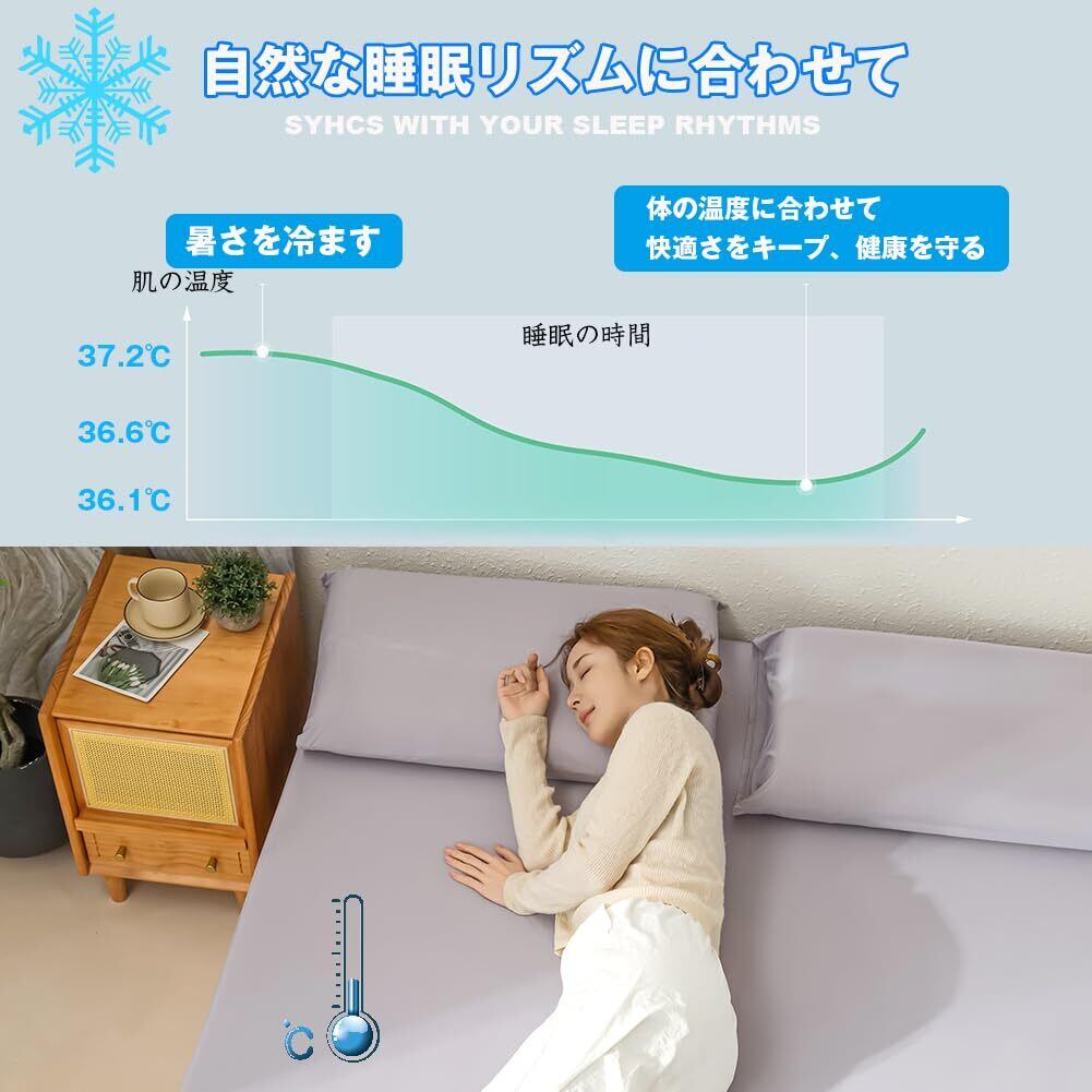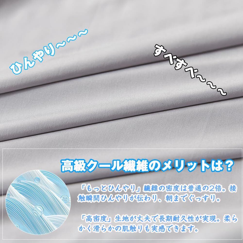 「ひんやりアップ!高密度冷却素材で暑い夜も快適睡眠」当商品は独自開発の「クールテック繊維」を採用。QMax0.4以上を実現しました。接触瞬間からひんやり感が湧いてきます。吸熱・放熱効果に優れ、エアコン依存を軽減する上に、汗をすっかり吸収し、ベタつかず朝まで快適に眠れます。