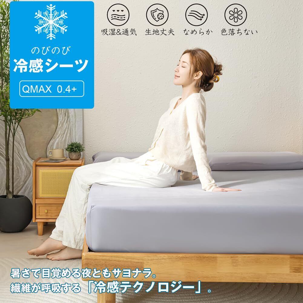 ボックスシーツ 夏用 キング ひんやり 伸びる 冷感シーツ 極細クール生地 吸湿通気 QMax0.4以上 すべすべ 柔らかい 丈夫な生地 伸縮性 抗菌防臭 全週ゴムバンド付 ベッドシーツ フィットシーツ マットレスカバー のびのび 速乾 グレー 180×200cm