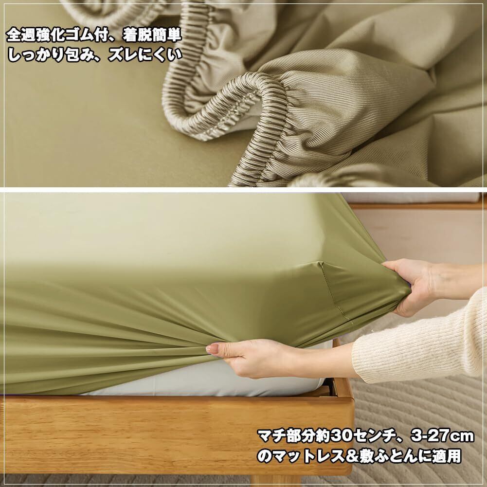 「360度ゴムバンド設計 厚いマットレスも完全フィット」伸縮性抜群、最大27cm厚のマットレスにもピタッと密着(サイズ調整可能)。伸縮率200%を実現しながら型崩れゼロ。全週ズレ防止ゴムバンド付きで、寝返りをしてもズレないです。