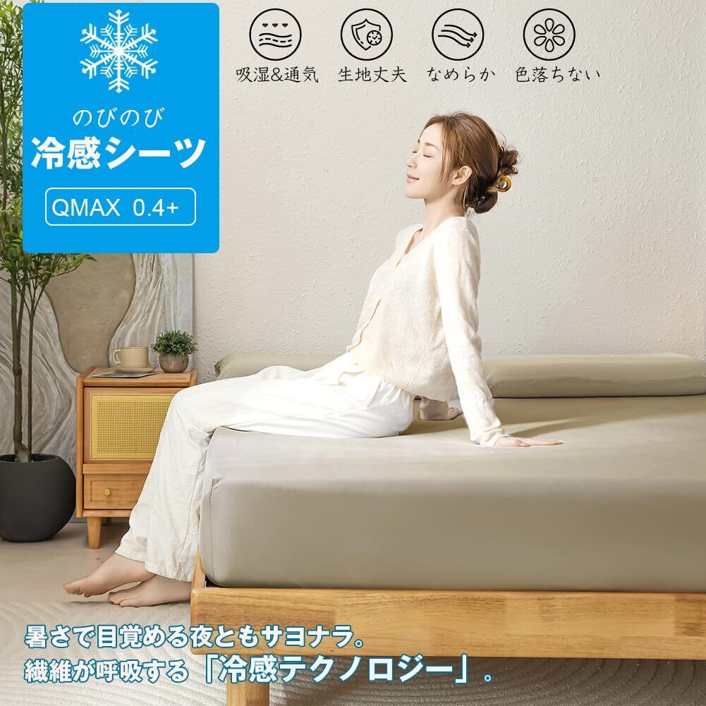 ボックスシーツ 夏用 キング ひんやり 伸びる 冷感シーツ 極細クール生地 吸湿通気 QMax0.4以上 すべすべ 柔らかい 丈夫な生地 伸縮性 抗菌防臭 全週ゴムバンド付 ベッドシーツ フィットシーツ マットレスカバー のびのび 速乾 ブラウン 180×200cm