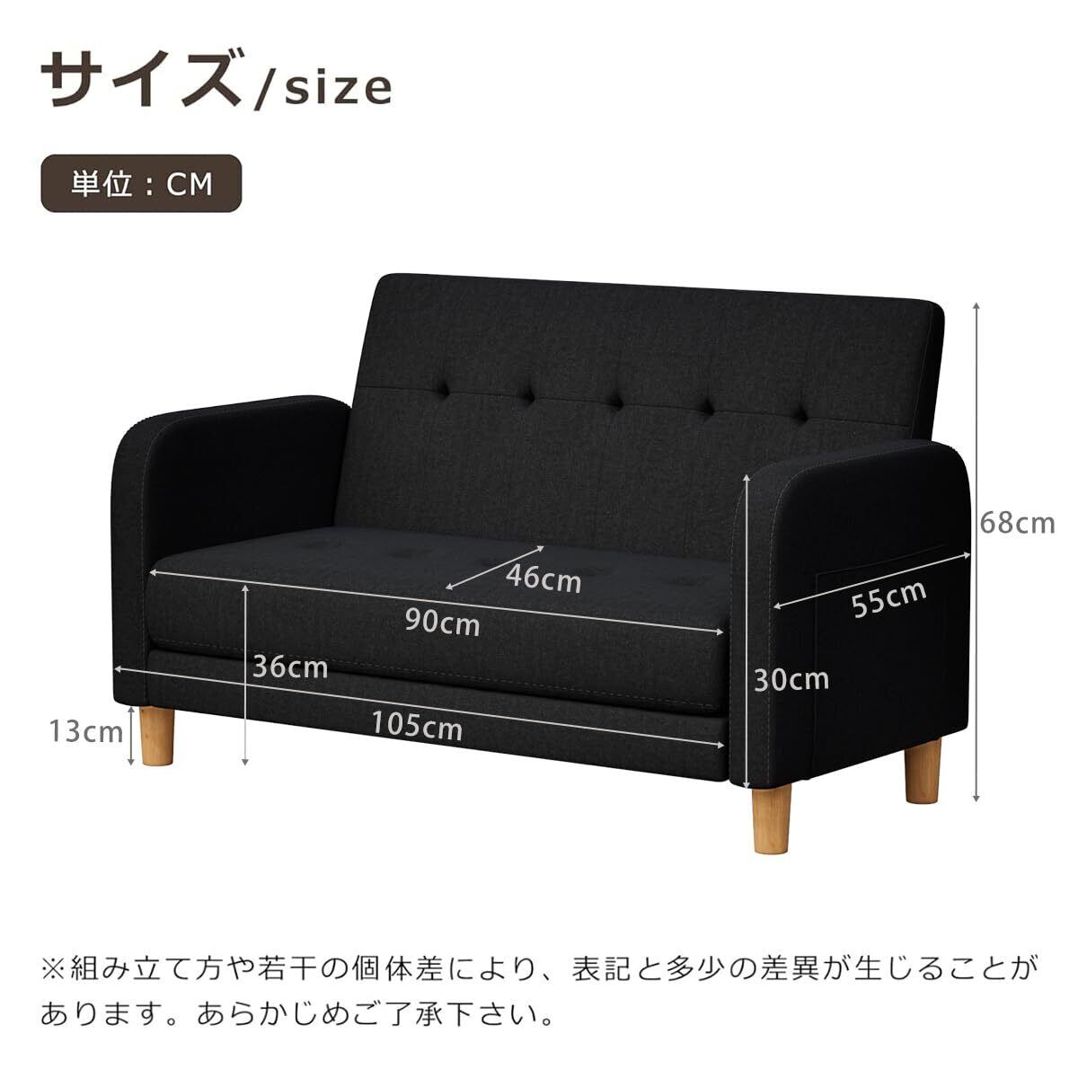 ソファー 2人掛け 肘付き 二人がけソファー 幅約105cmローソファー 簡単組み立