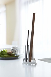 まな板スタンドは、使いやすいプレートデザインで、まな板をしっかりと支えることができます。スタイリッシュなホワイトカラーが、どんなキッチンにもマッチ!立てて収納することで、まな板が乾燥しやすく、衛生的に保てます。