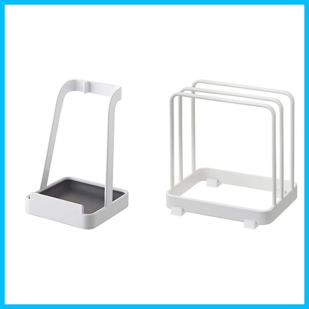 山崎実業 お玉&鍋ふたスタンド タワー ホワイト 2248 & まな板スタンド プレート ホワイト 2496【セット買い】