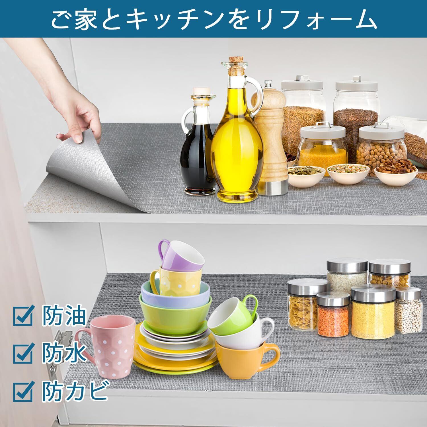 WochiTV 食器棚シート 下駄箱 シート 滑り止めシート キッチンシート 下駄箱 自己接着棚ライナー 防虫 防カビ 防水 抗菌 防油 滑り止め 家具保護 EVA製 裁断可能 グレー 30x600cm