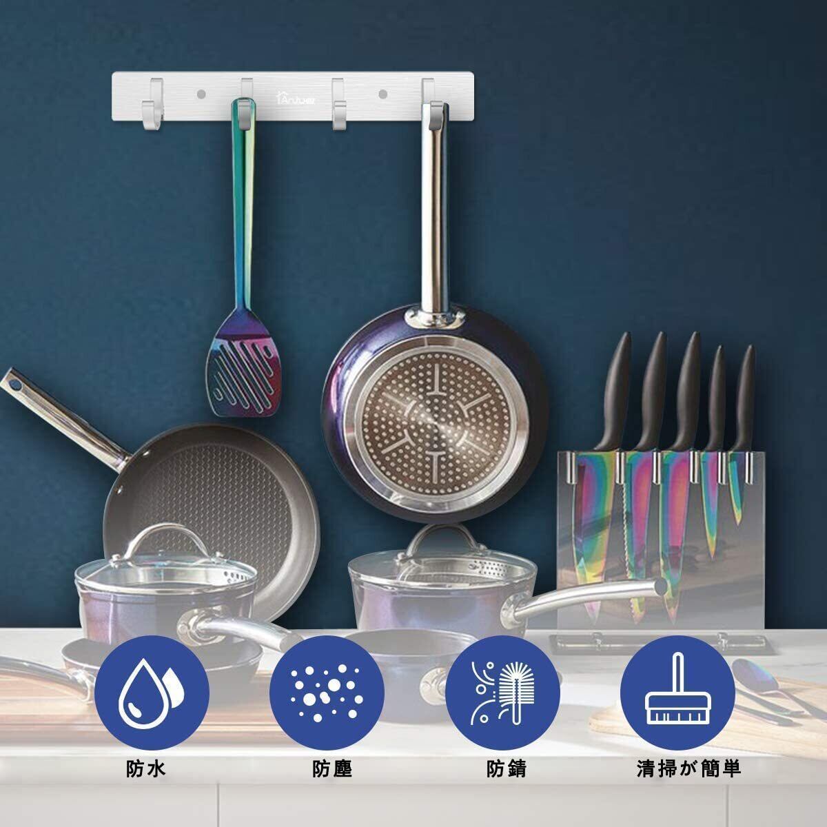 ●多用途:アルミニウム合金製の壁掛けフックは玄関、台所、浴室、寝間などの限られた空間にも有効利用できます。例えば、玄関に設置して、外出時に必要なものを掛けておくと便利です。
