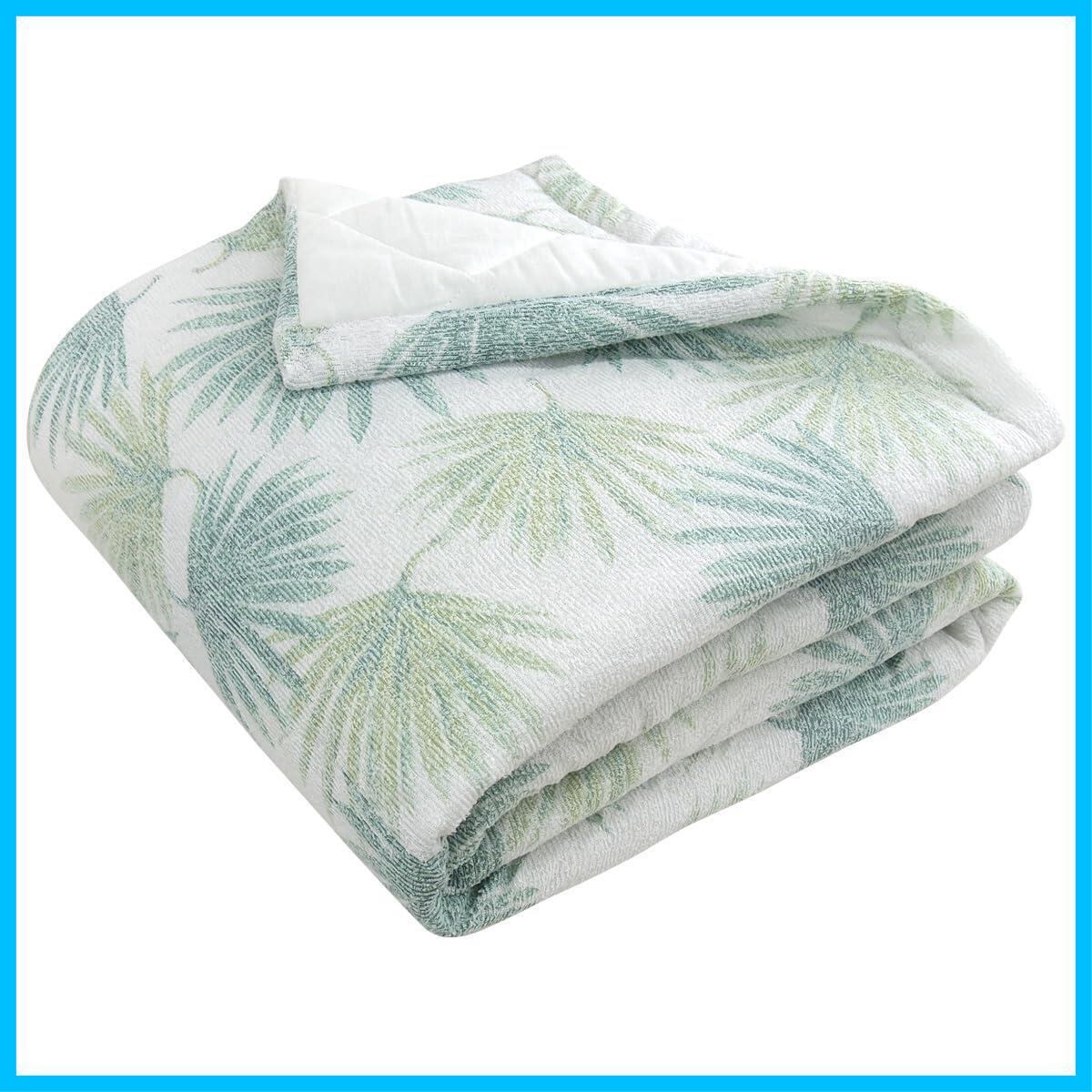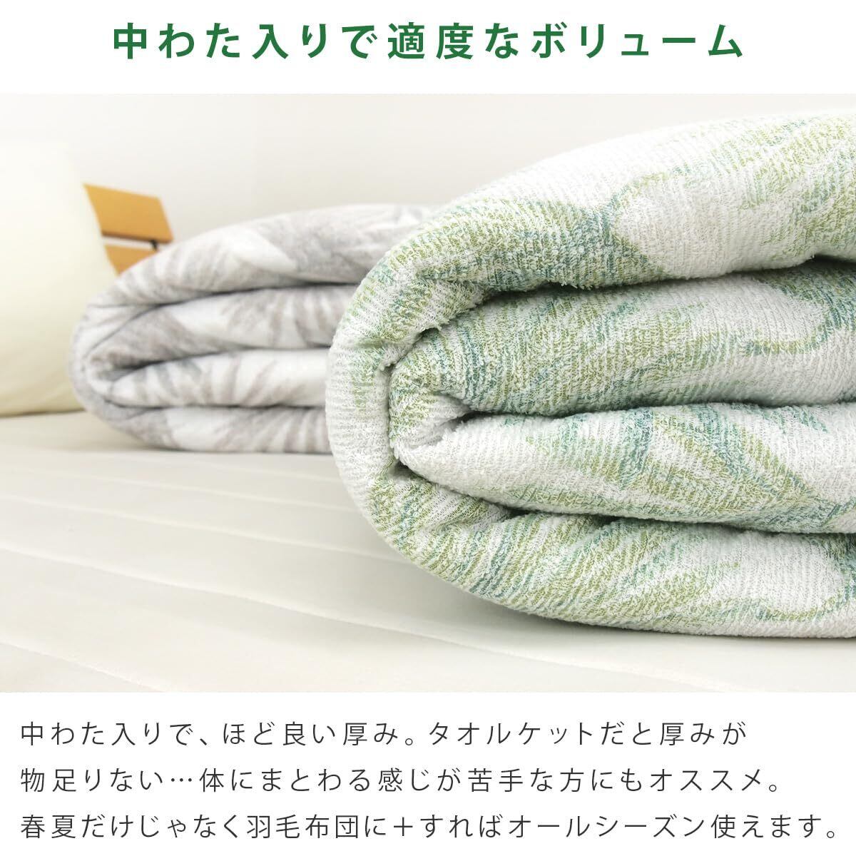 リヴェール タオル 肌掛け布団 シングル シダ柄 わた入りタオルケット 掛け布団 ガーゼ 洗える 吸湿速乾 ボタニカル (グリーン)