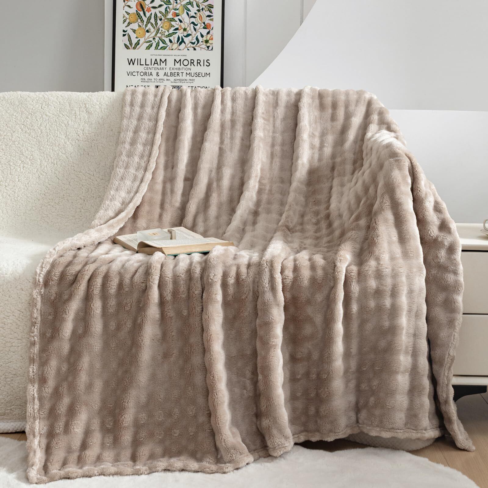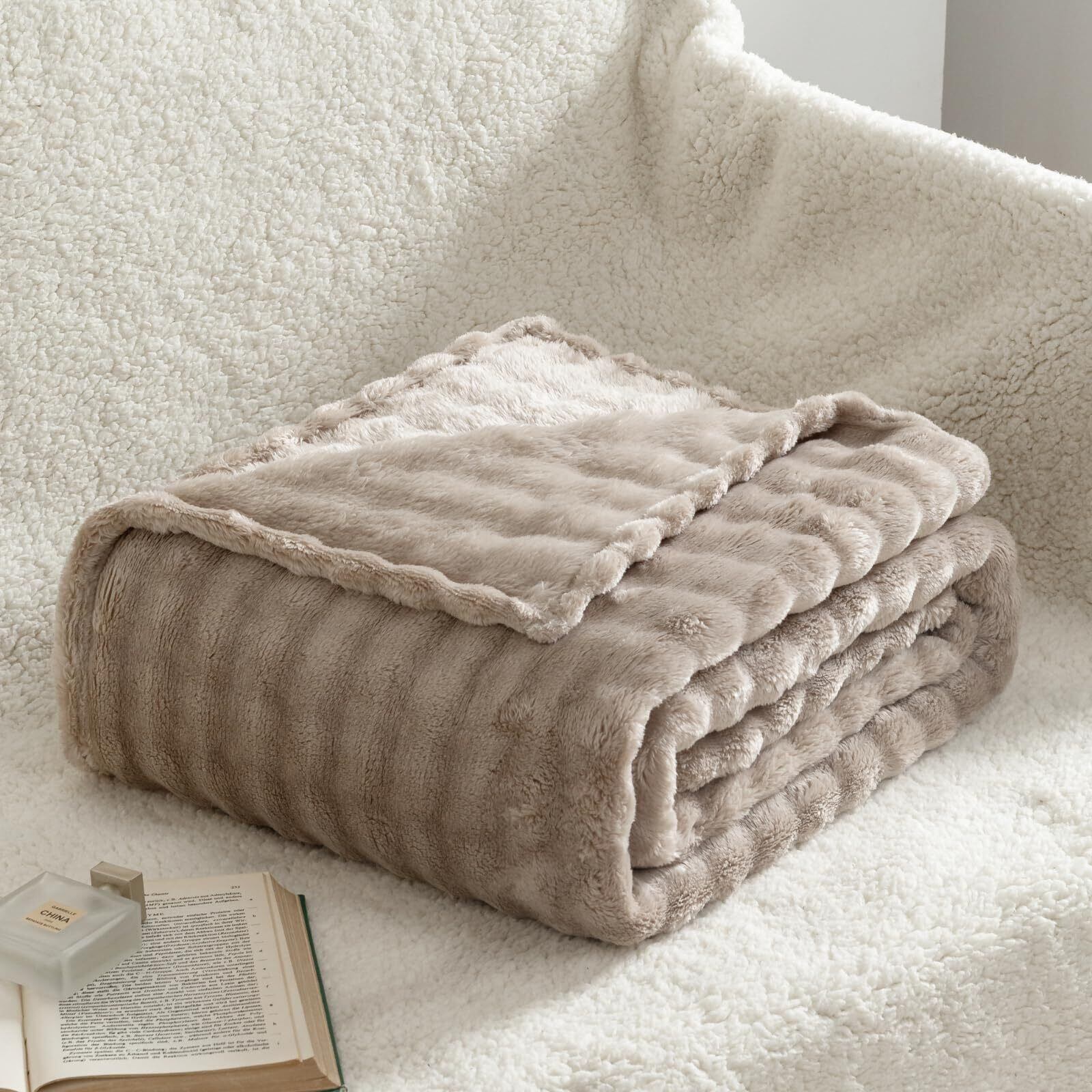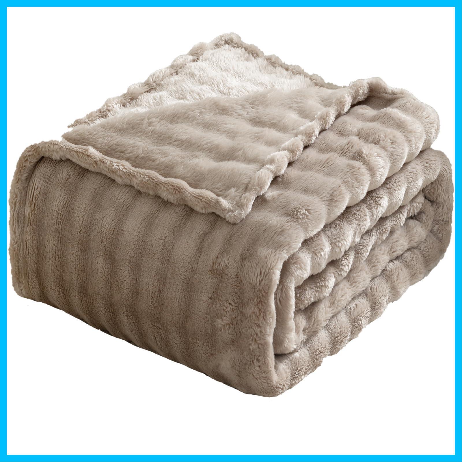 【在庫セール】Mokoya ふわとろ 毛布 冬用 ダブル 180x200cm おしゃれ ラビットファー ブランケット 可愛い モコモコ 柔らかい 掛毛布 洗える Blanket (カーキ)