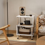 「FryLR サイドテーブル」は、シンプルでありながらおしゃれなデザインが特徴のアイテムです。木目調のホワイト大理石柄は、多様なインテリアにマッチし、リビングや寝室でもしっかりと存在感を放ちます。