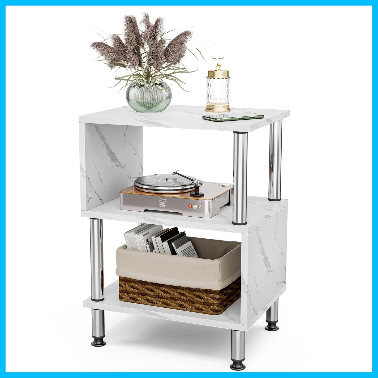 FryLR サイドテーブル おしゃれ S字ラック 40*29*51cm 木目調 大理石柄 オープンラック エンドテーブル 寝室 ソファ ベッド横 ジグザグラック 見せる収納 サイドラック 3段 収納棚(ホワイト大理石柄)