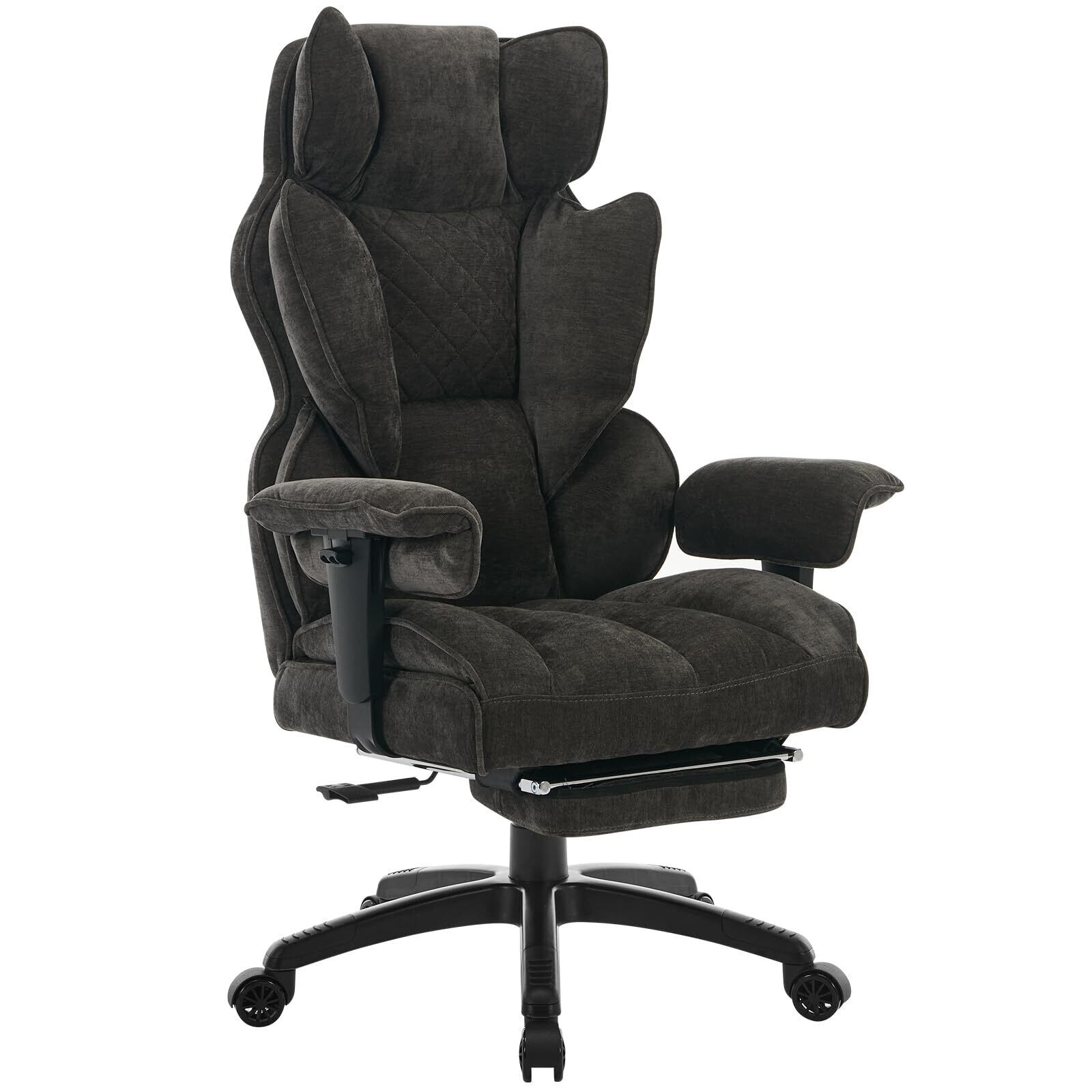 SKYE ゲーミングチェア 広々座面 通気性 ファブリック生地&低反発クッション|135°リクライニング&ランバーサポート|180kg耐荷重 デスクチェア オフィスチェア 在宅勤務 社長椅子 (シェニール生地ダークグレー)