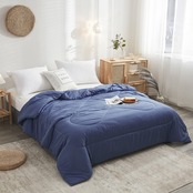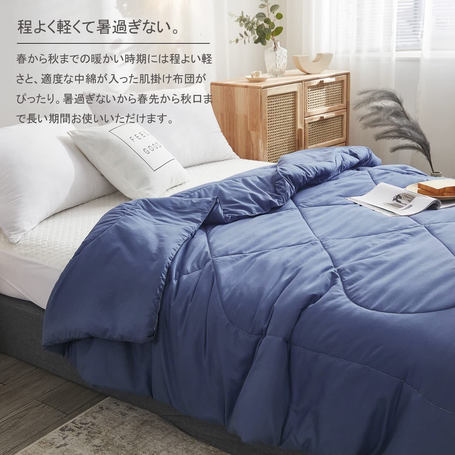冷房の効き過ぎやエアコンの寒さを和らげるために、この布団は理想的です。また、夏場でも軽やかに使えて、オールシーズンでお楽しみいただけます。お部屋のインテリアとも調和するブルーのデザインは、おしゃれな印象を与えます。