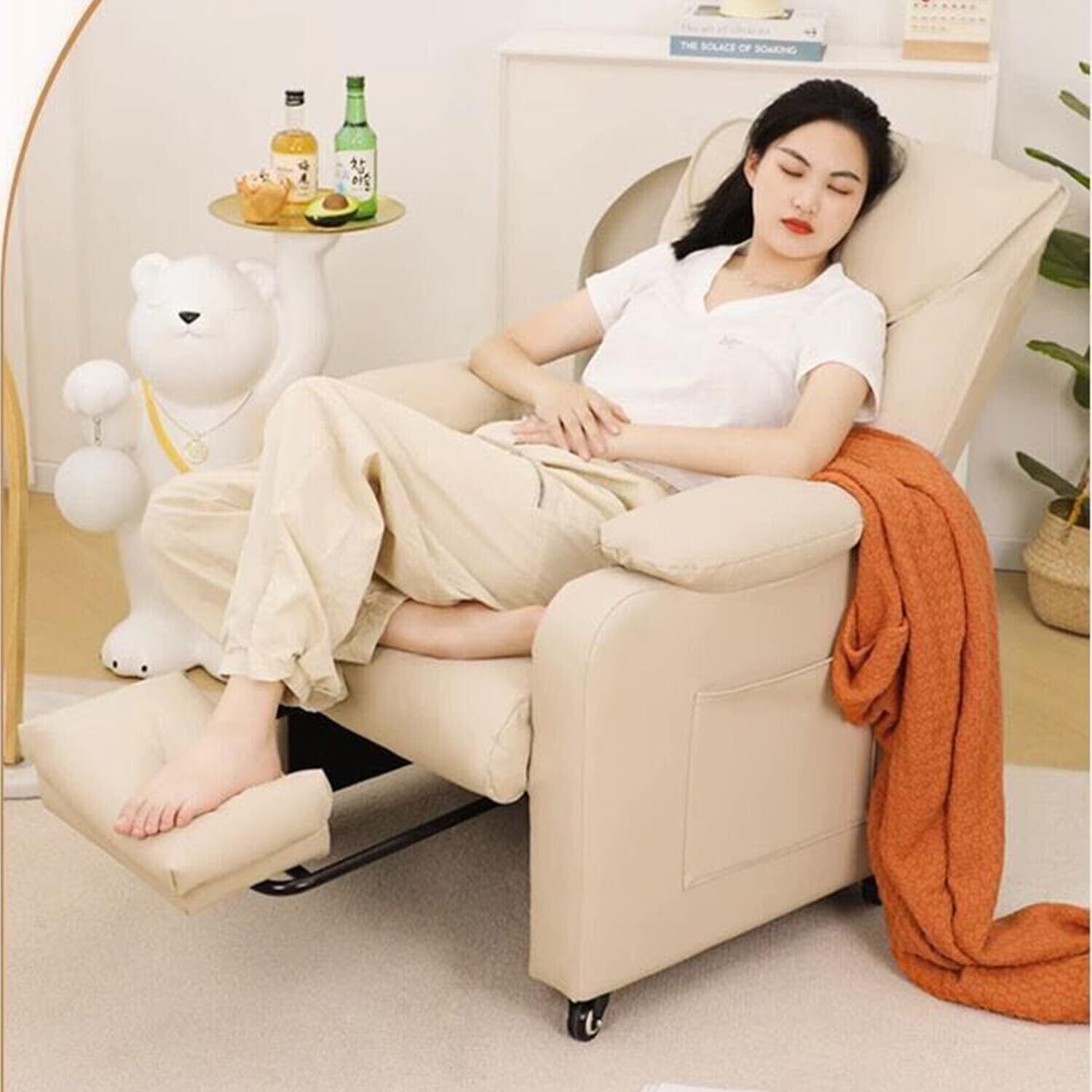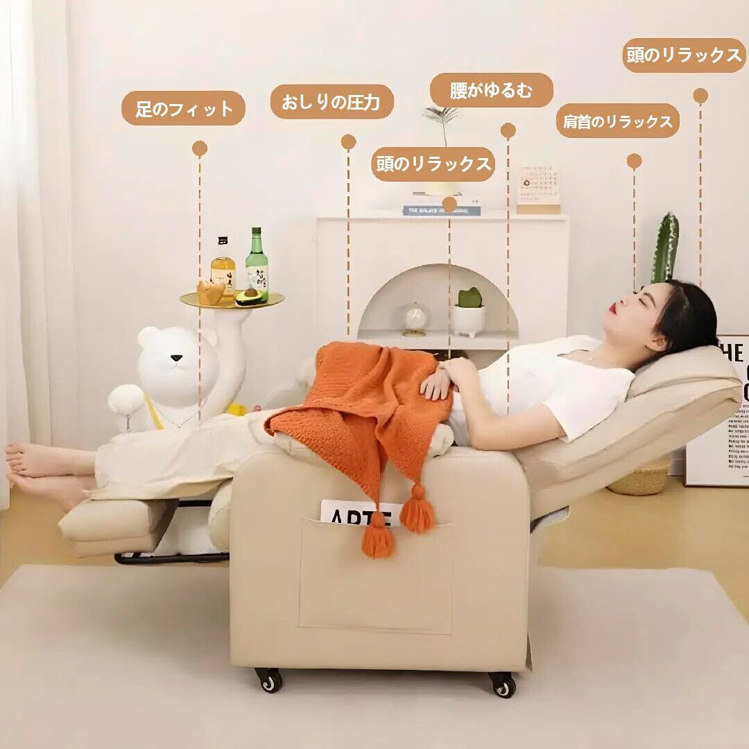 【細部へのこだわり】両側に便利なポケット付きで、リモコンや小物などが収納できます。頭から足まで体にフィットし、長時間座っていても疲れにくいです。フットレストを調節して、ゆったりくつろいでリラックスタイムを楽しめます。頑丈なスチールフレームは安定性抜群で、耐久性に優れています。