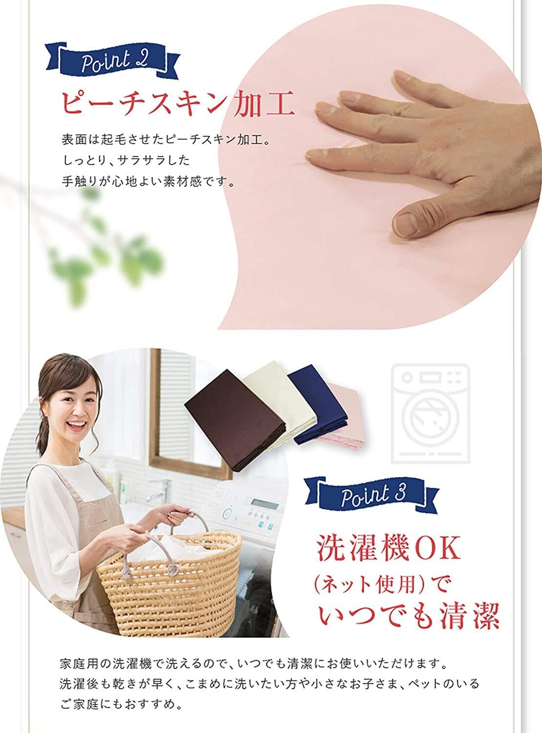 片側に210cm全開ファスナー使用 - ファスナーは端まで開くので、布団の出し入れがやすくなっています。布団留めひも8ヶ所付き - 掛け布団の紐通しにカバーのひもを通して結びこどで、布団とカバーがずれにくいです。オールシーズンずっと心地よくお休みいただけるように使いやすさと品質にもこだわりました。「安全」:防臭、防ダニ、抗菌、ホルムアルデヒド無し。低アレルギー性の生地を使いますので、肌が敏感な方、赤ちゃんにも最適です。肌にあたる生地は、なめらかな肌触りのピーチスキン加工なので快適にお休みいただけます。