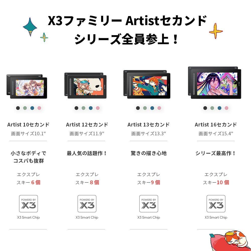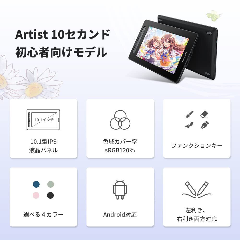 XPPen 液タブ 10インチ Androidスマホ使用可能 X3チップ搭載ペン IPS フルラミネーション 液晶ペンタブレット 4色選択可 初心者 イラスト 写真加工 ソフトウェア特典付 Android Windows MacOS対応 Artist 10セカンド (ブラック)