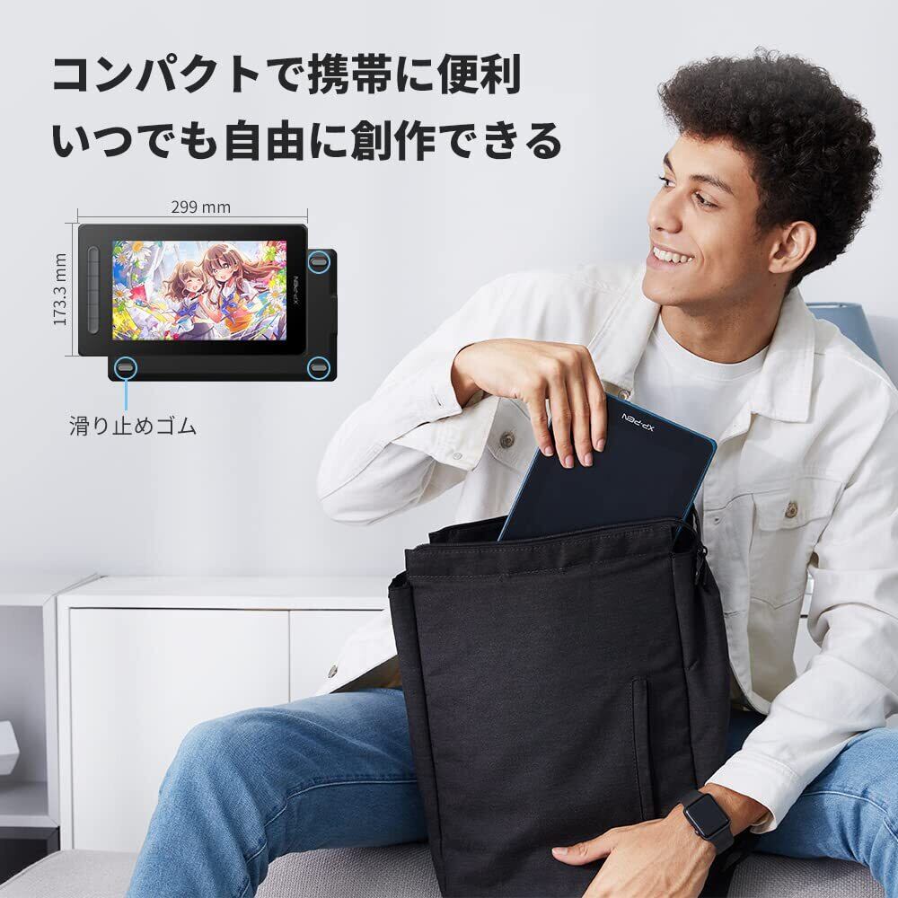 ➊【かわいい小型モデル】10.1型液晶パネルを搭載、224.5x126.7mmの表示サイズ、1920×1080の解像度と120% sRGBの色域カバー率で理想的な描画環境を構築できます。フルラミネーション技術を採用、視差を最小限に抑え、より正確で自然な描き心地を実現します。コンパクトで持ち運びしやすく好きな場所でイラストが描けます。持ち運びに最適な液晶タブレット。 カラーも4色展開で、学生から社会人、男女問わずお使いいただけます