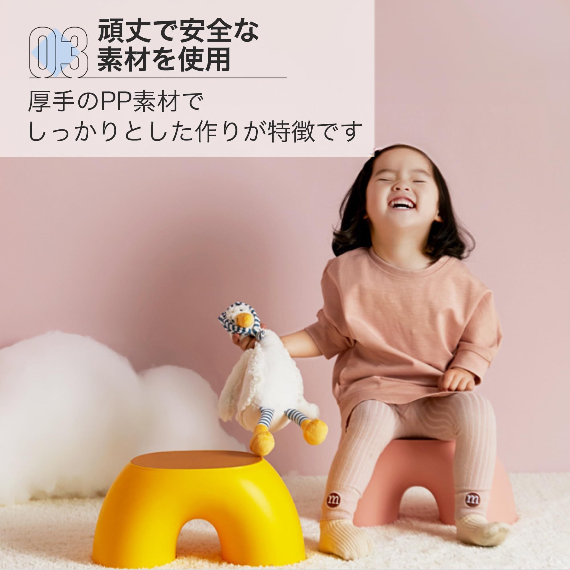 「Asdays 子ども用スツール」は、安定感のあるデザインで、小さなお子様が自分でトイレに行く際のお手伝いをします。高さがちょうど良く、安全に足を置けるため、安心してご使用いただけます。お子様が自立する助けになるアイテムです!