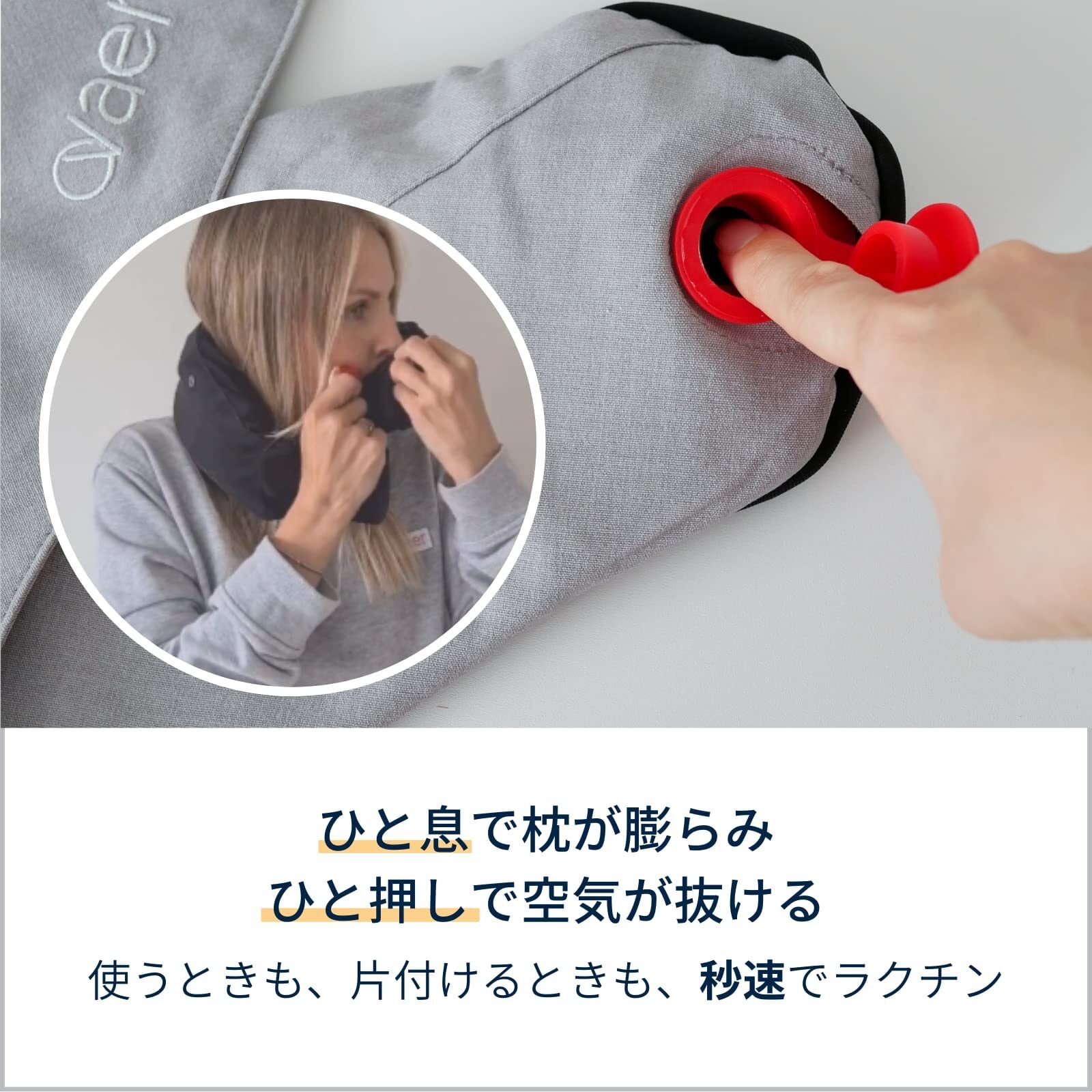 「Ovaer ネックピロー」は、旅行中の疲れを軽減するためにデザインされたエアーピローです。フード付きの独自デザインにより、周囲の光を遮ってより快適な環境を提供します。飛行機やバス、列車での移動中に心地よく眠ることができます。