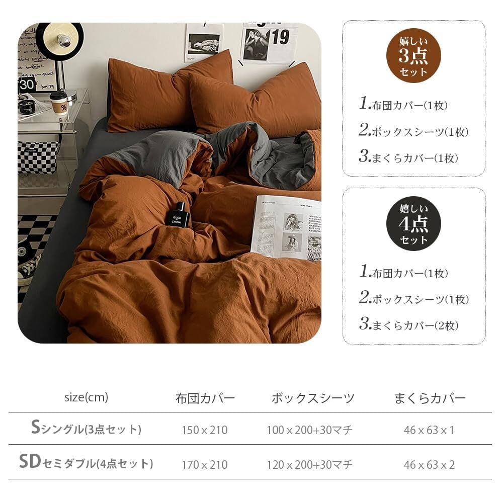 ✿【商品の仕様】素材:コットンのような柔らかい素材、ポリエステル100% 【シングル-3点セット】布団カバー:150×210cmボックスシーツ:100×200cm+30cm(マチ)枕カバー:46×63cm×1枚;【セミダブルー-4点セット】 布団カバー:170×210cmボックスシーツ:120×200cm+30cm(マチ) 枕カバー:46×63cm×2枚; (マチ部分は約30cmになります。厚さ5-28cmのマットレスにぴったりフィットします!)