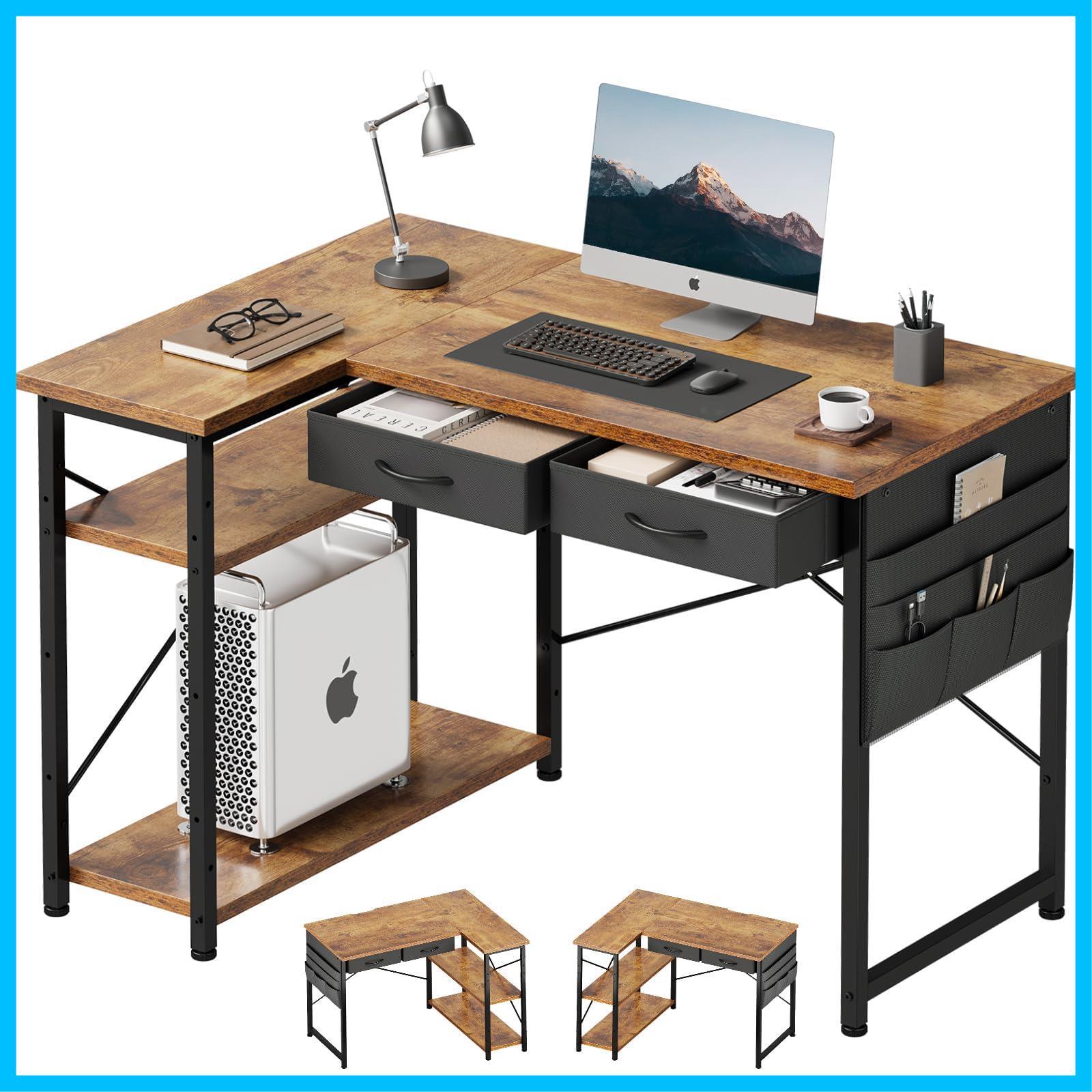 Maihail l字デスク机pcデスク パソコンデスク 幅100cm×奥行45cm つくえ 勉強机学習机 左右入替可 布製引き出し付き オフィスデスク ワークデスク 収納ラックビンテージ