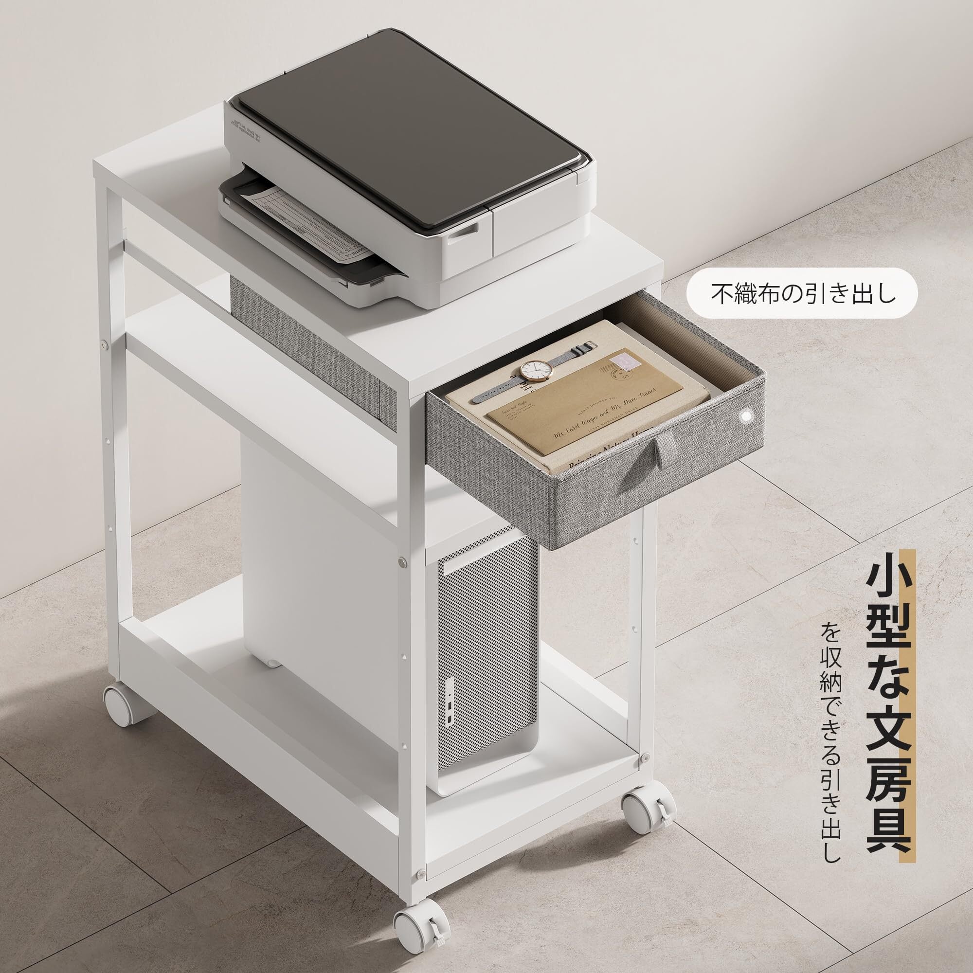 【注意!】製品は現在、新旧モデルの入れ替えの時期にあります。白と黒のホイールはランダムに発送されます。もしホイールの色の希望があれば連絡して対応色を郵送してください。ご理解いただきありがとうございます。【いろいろな場所で活躍】パソコンラックの高さは68 cmなので、机の横に置いてプリンターラックにするほか、机の下に置いてパソコン本体ラックにすることもできます。レイヤはA4ファイルが収納できる高さなので、キャビネットとしても使えます。ソファの横に置いてサイドテーブルにしたり、ベッドサイドに置いてサイドテーブルにしたりするのもいいでしょう。