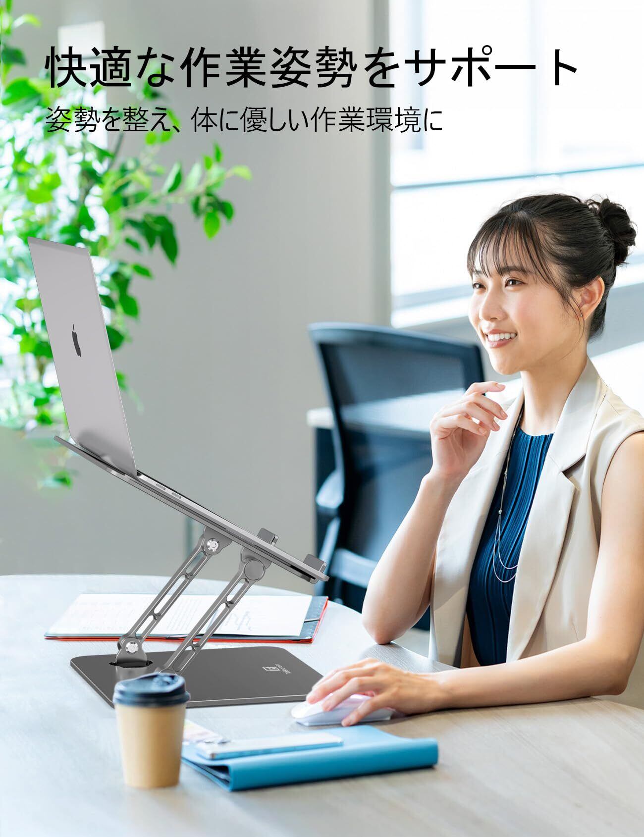 このPCスタンドは、人間工学に基づいて設計されており、目線の高さに合わせて調整が可能です。自然な姿勢を保つことで、長時間の作業でも肩や首の負担を軽減します。快適さと健康を両立させたい方にピッタリです!