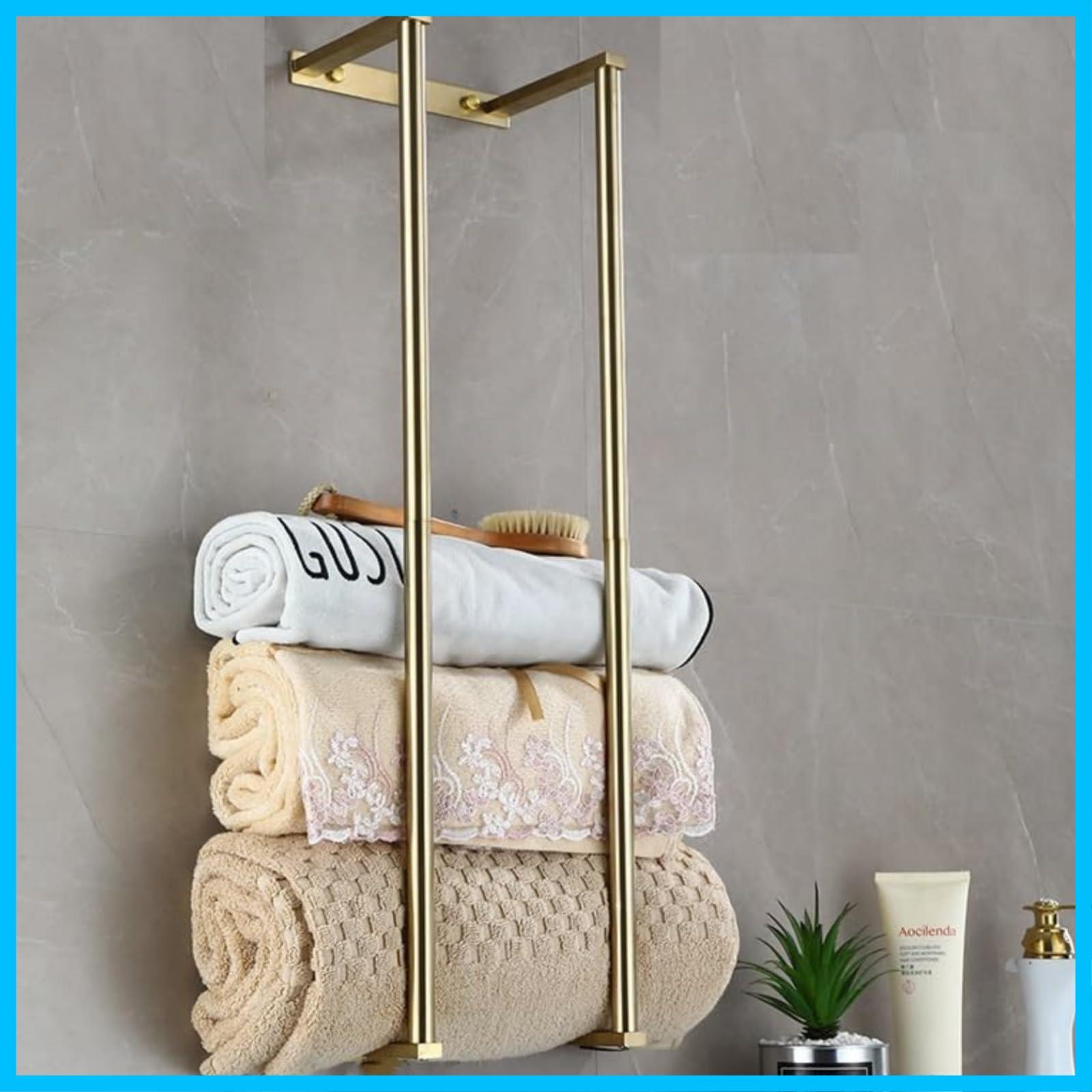 YWHWLX タオルラック 壁取り付け タオルハンガー タオル掛け バスルームタオル収納 バスタオルスタンド おしゃれ 丸めて収納ランドリーラック バスタオル置き タオル収納 タオルホルダー 取り付け簡単 省スペース コンパクト シンプル (ゴールド)