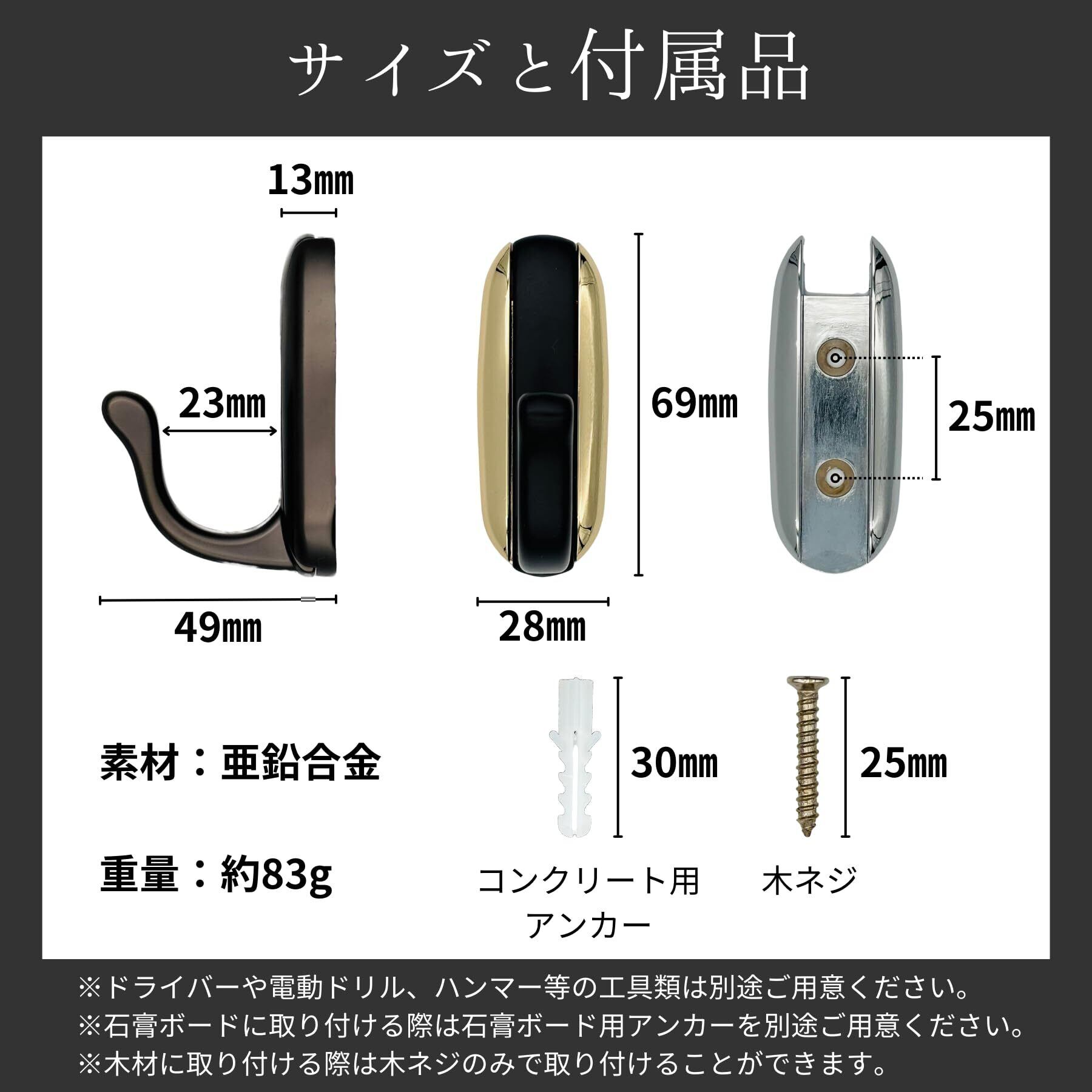 【用途に応じた幅広い活用】 コートフック・バッグフック・タオルフック・キーフック・帽子掛け・キッチンフック・バスルームフックとして多用途に活用可能。玄関収納・クローゼット整理・洗面所・キッチン・ガレージ・オフィス・店舗など、さまざまなシーンで活躍します。DIY愛好者にも最適なアイテムで、実用性とデザイン性を兼ね備えた多機能フックです。