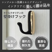 【取り付けネジが見えない隠し構造】 ネジ隠し機構を採用し、取り付け部分が見えないスマートなデザインを実現。シンプルかつ洗練されたウォールハンガーとして、空間を美しく整えます。金属製の収納フックならではの高級感が、インテリアに上品なアクセントを加えます。