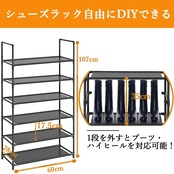 本商品は6段の靴棚を備えており、約24足の靴を収納可能。種類やサイズごとに効率良く収納できるため、毎日の靴選びが楽しくなります。デザインにもこだわり、どんなインテリアにもマッチするシンプルなブラックカラーで仕上げました。