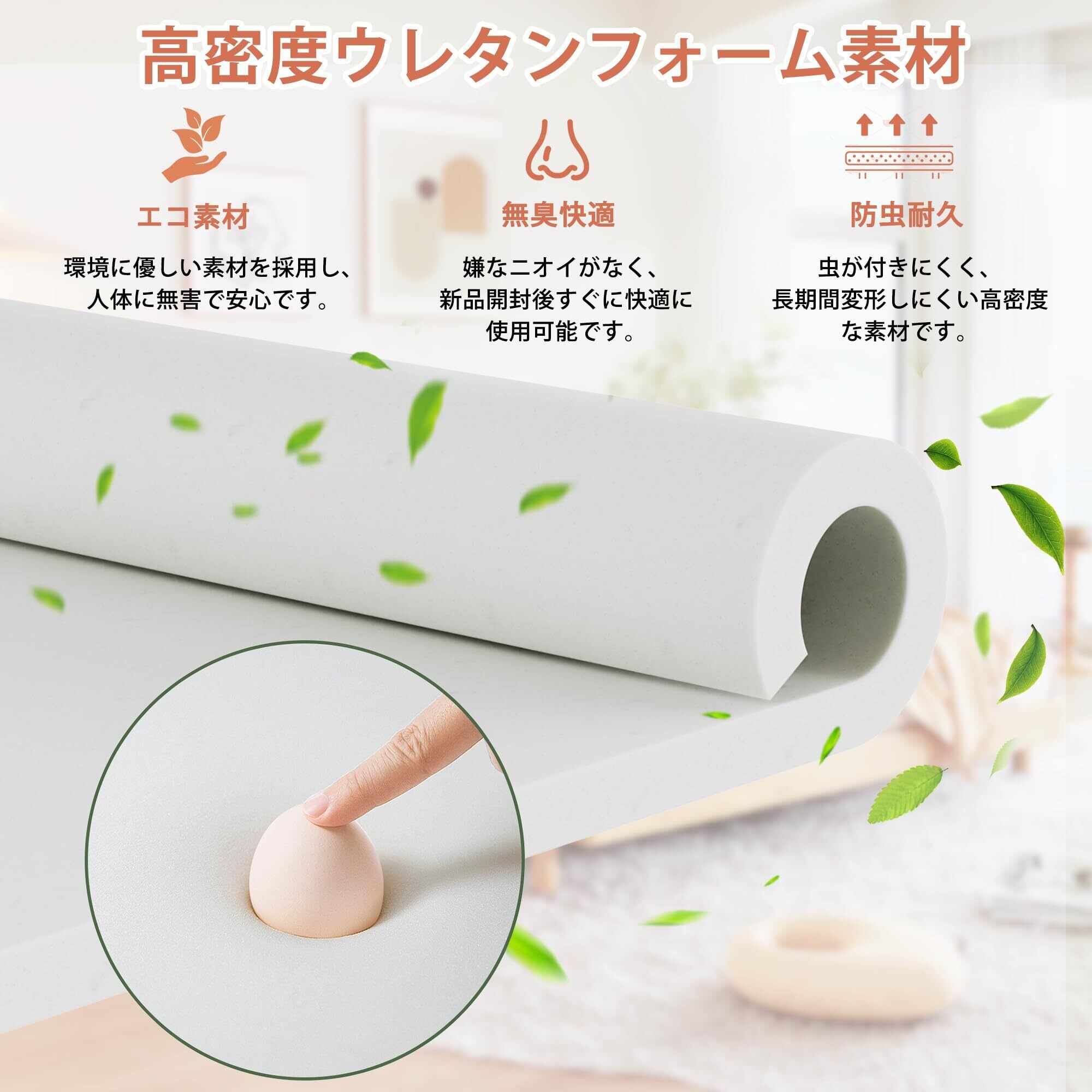 【高密度ウレタンフォーム素材】 :VECELOのマットレスは高反発ウレタンフォーム素材で、環境に優しい素材を採用し、嫌なニオイがなく、新品開封後すぐに快適に使用可能です。そして、高密度な素材なので、虫が付きにくく、長期間変形しにくい丈夫な構造です。