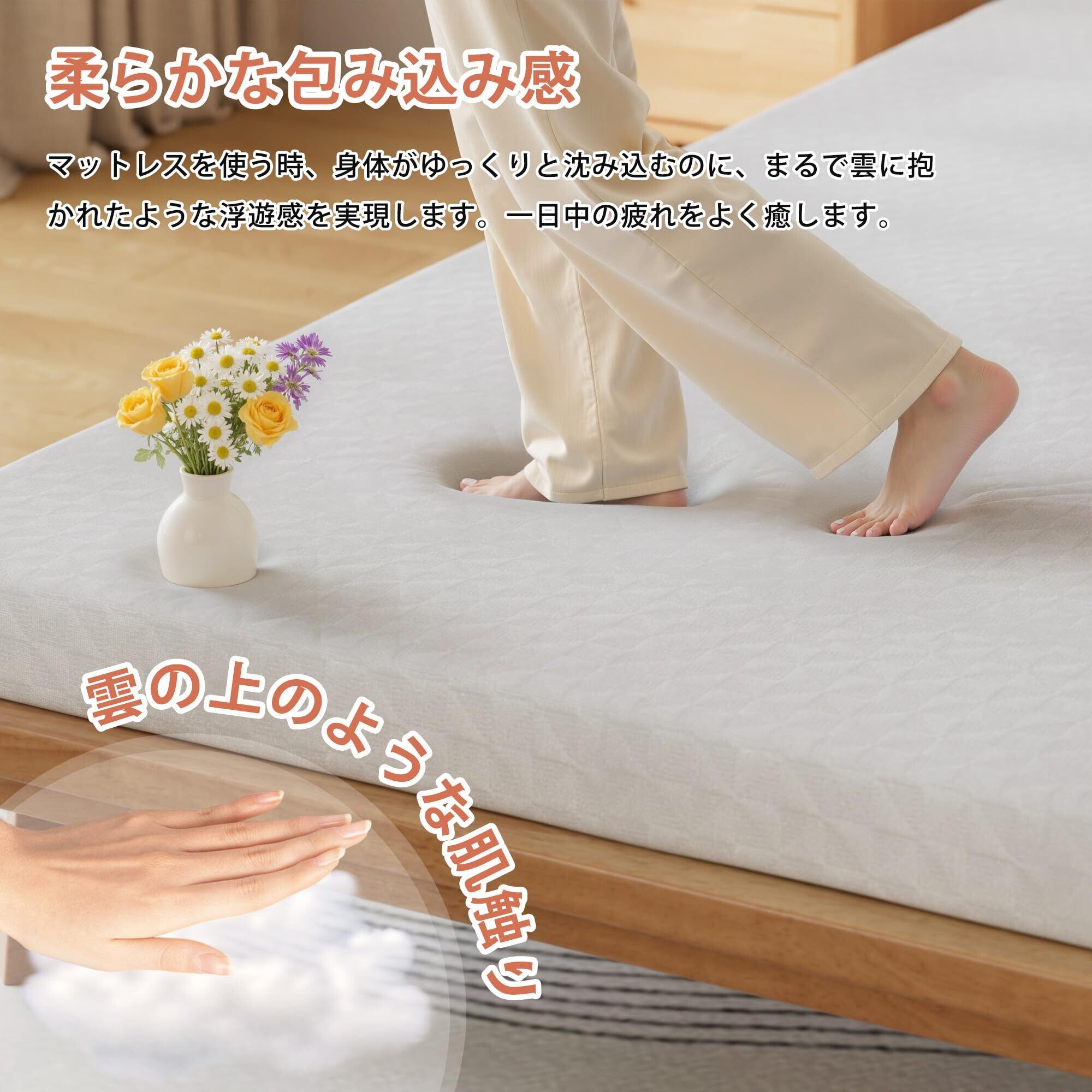 【丸洗い可能なカバー付き】 :本社のマットレスはカバーが取り外しが可能で、丸洗いできるので清潔を保ちます。また、柔らかな肌触りで、敏感肌の方でも安心してご利用いただけます。そして、マットレスのカバーはファスナー付き、片手でスイーッと開閉可能です。