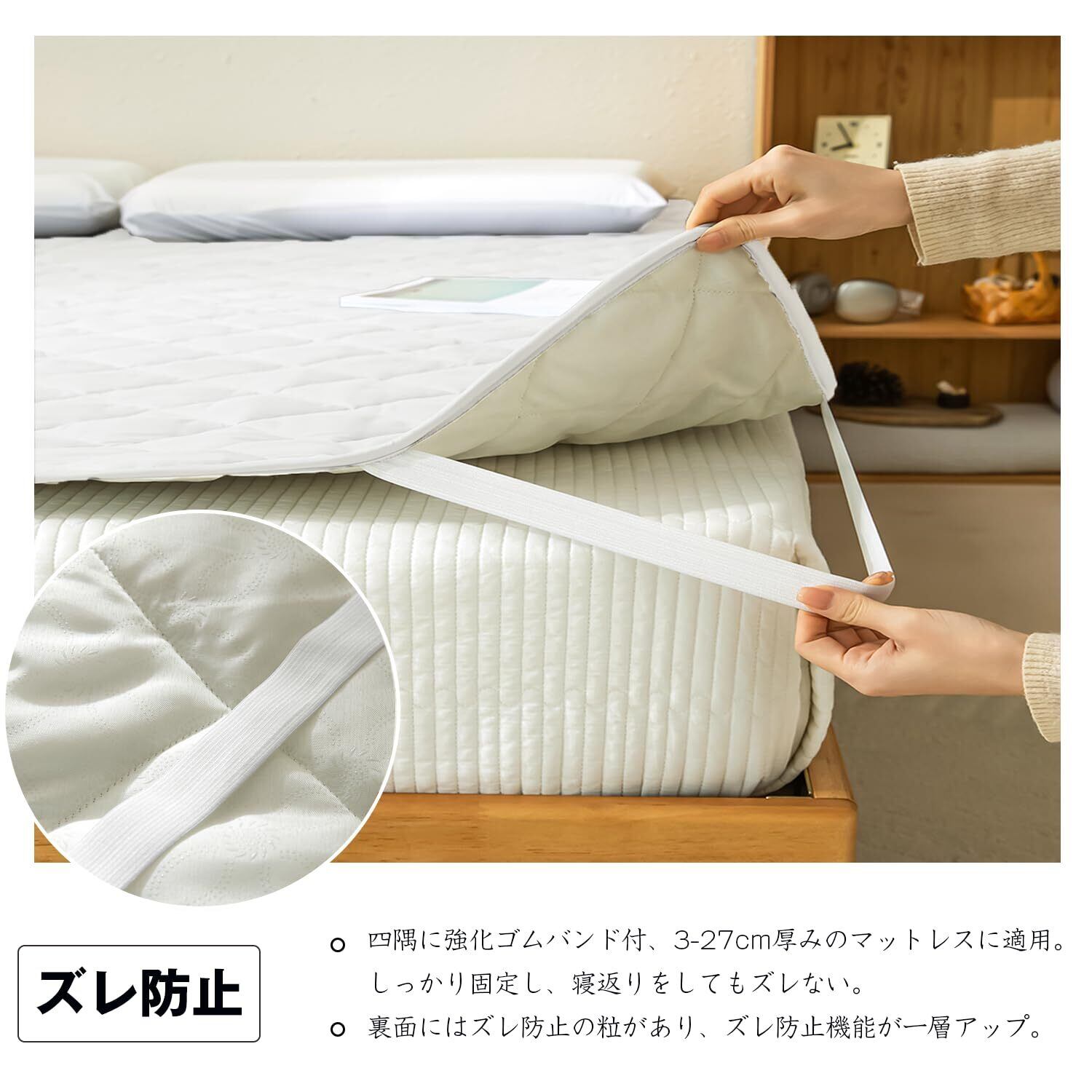 「ズレにくい四隅ゴムバンド+洗濯機で丸洗いOK。お手入れ簡単で、忙しい毎日でも清潔をキープ。」四隅にはしっかりとした幅広のゴムバンドを採用しており、3-27厚みのマットレスに適用です。マットレスや敷き布団にしっかり固定できます。ご家庭の洗濯機でそのまま丸洗い可能。脱水後は速乾性があるため、天気の良い日なら数時間で乾きます。頻繁に洗いたい方や、季節の変わり目にまとめてお手入れしたい方にも最適です。万一商品が問題があったら、気軽にご連絡ください。お客様の都合でへんぴん、交換などの対応が可能です。