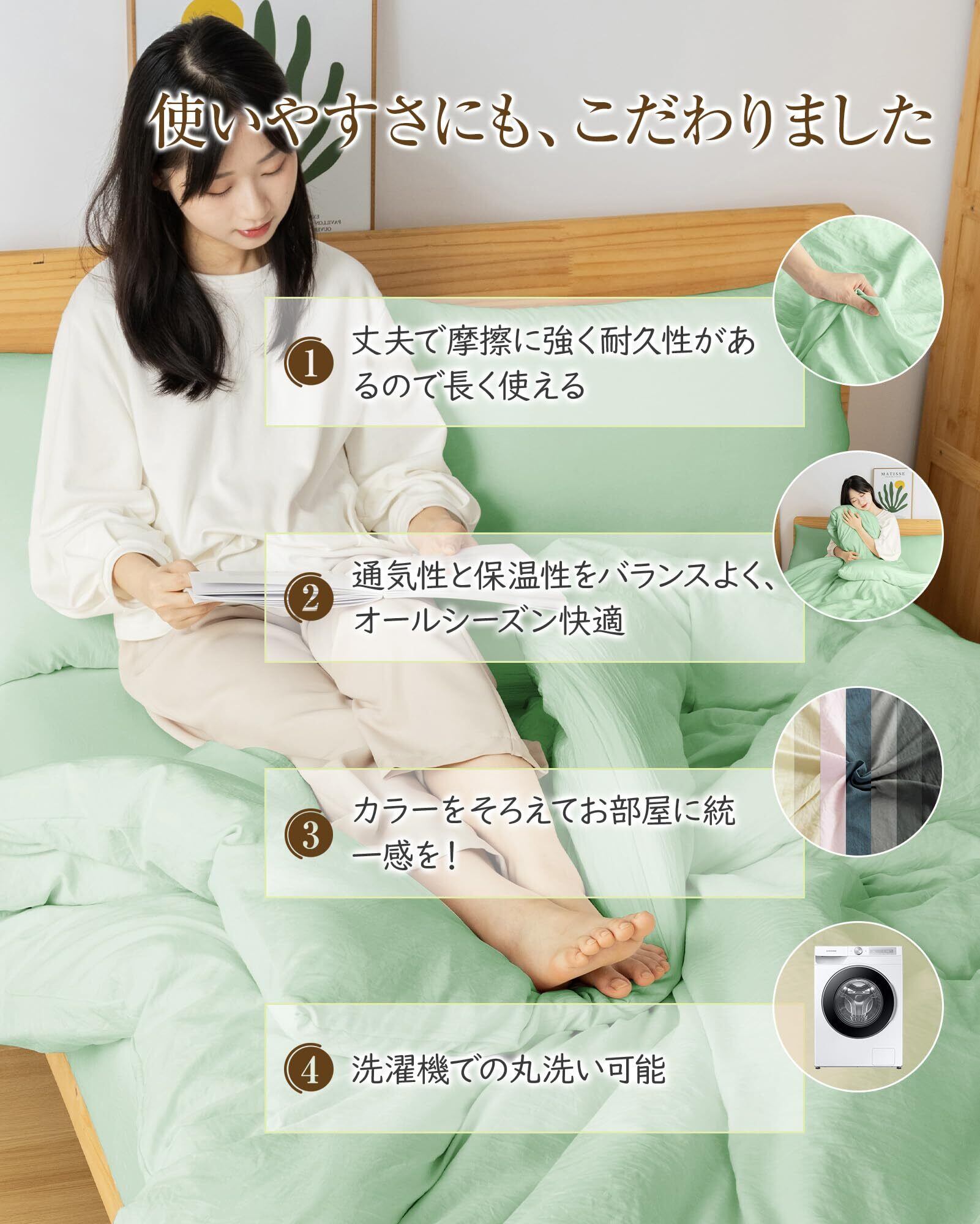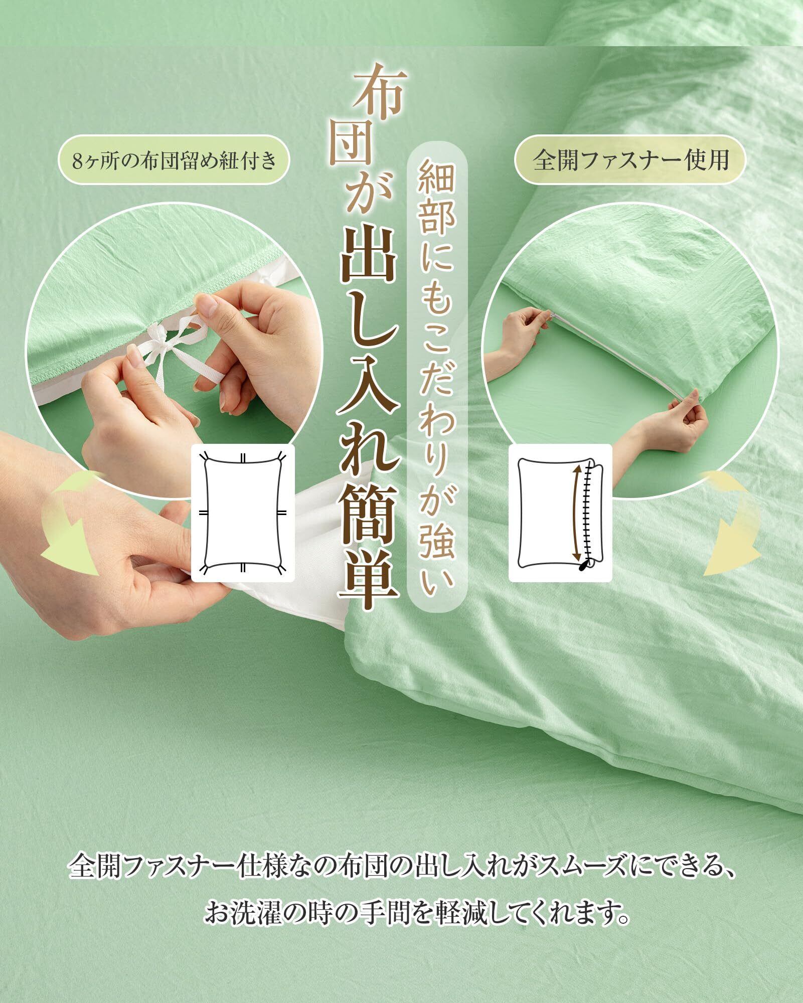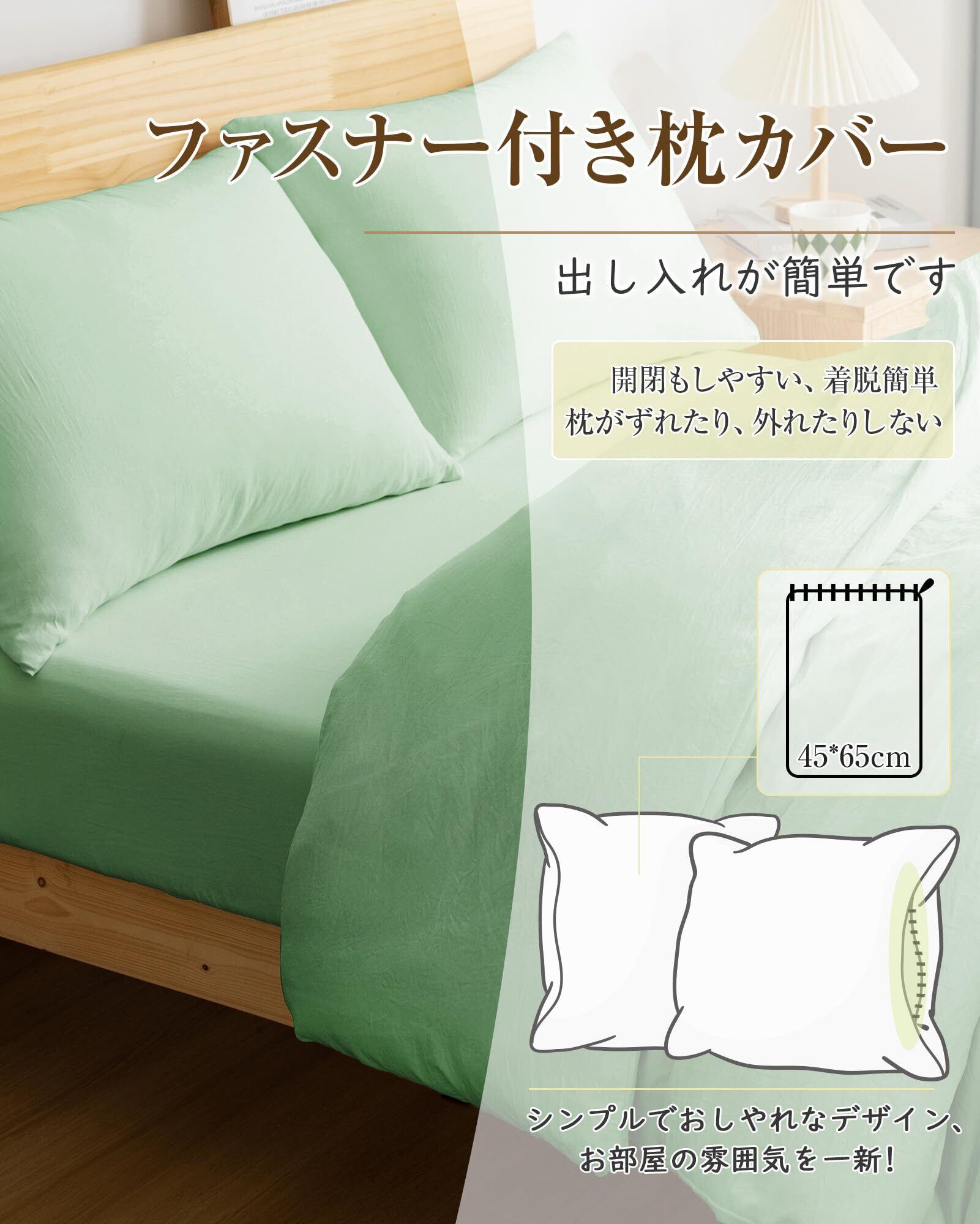 【在庫処分】Housecover 布団カバー シングル 3点セット 寝具カバーセット【水洗い加工&超柔らかい】掛け布団カバー 洋式ベッド・和式布団兼用 ボックスシーツ 掛け布団カバー 洗いざらしシワ加工 やわらか 肌触り 吸水速乾 丸洗い 無地 シンプル オールシーズン(シングル・3点セット グリーン)