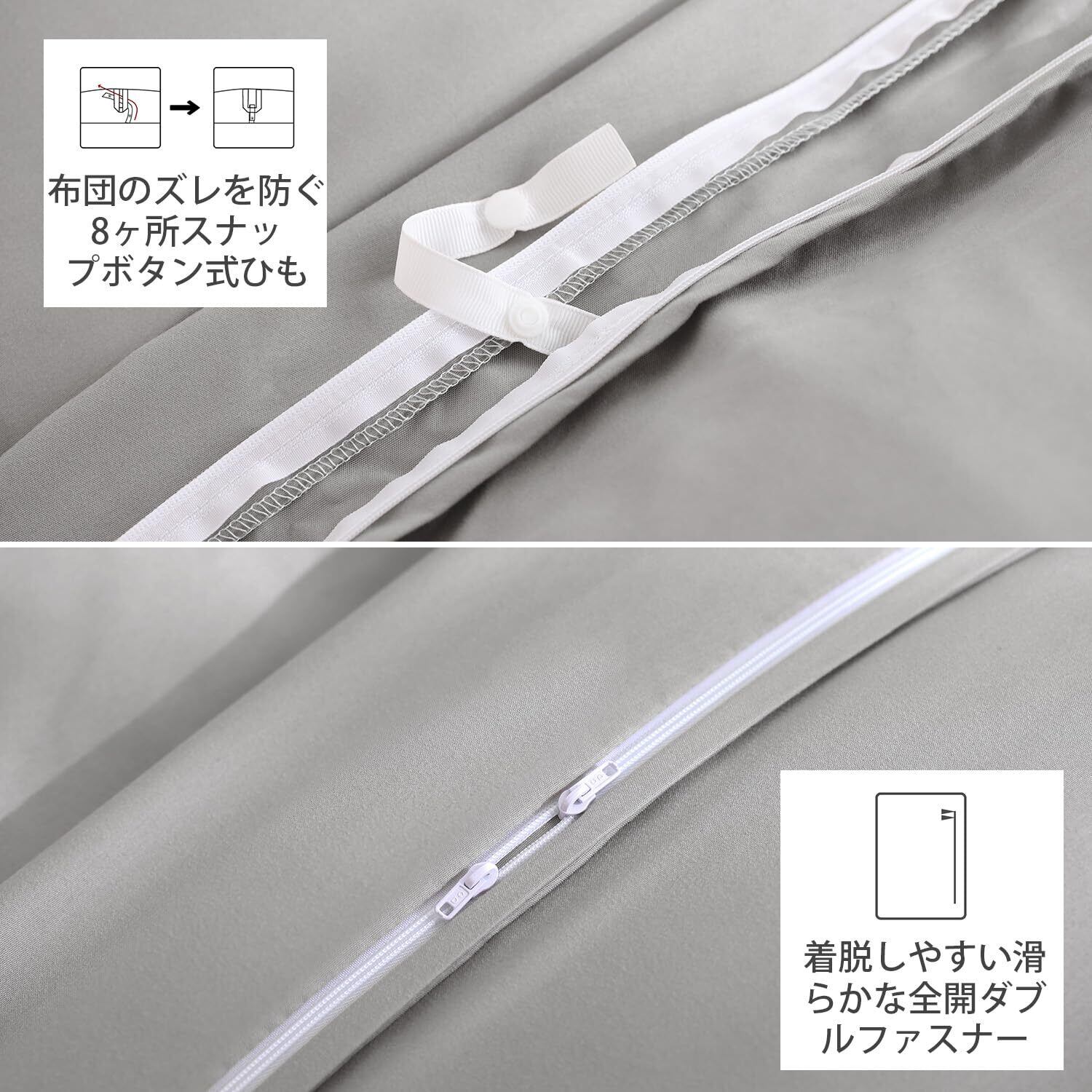 【使いやすい便利なデザイン】掛け布団カバー: 150×210cm(1枚)、片側全開(約210cm)ファスナーまたは便利な両開きファスナーで布団の出し入れが楽々。内側8ヶ所の布団留めひもで睡眠中のズレをしっかり防止。ボックスシーツ:100×200+30cm(1枚)、全周の伸縮性ゴムで高さ約28cmまでのマットレス/敷き布団にぴったりフィット。寝返りでもズレにくい設計。枕カバー:43×63cm(1枚)、 封筒型で出し入れが簡単、使い勝手抜群。