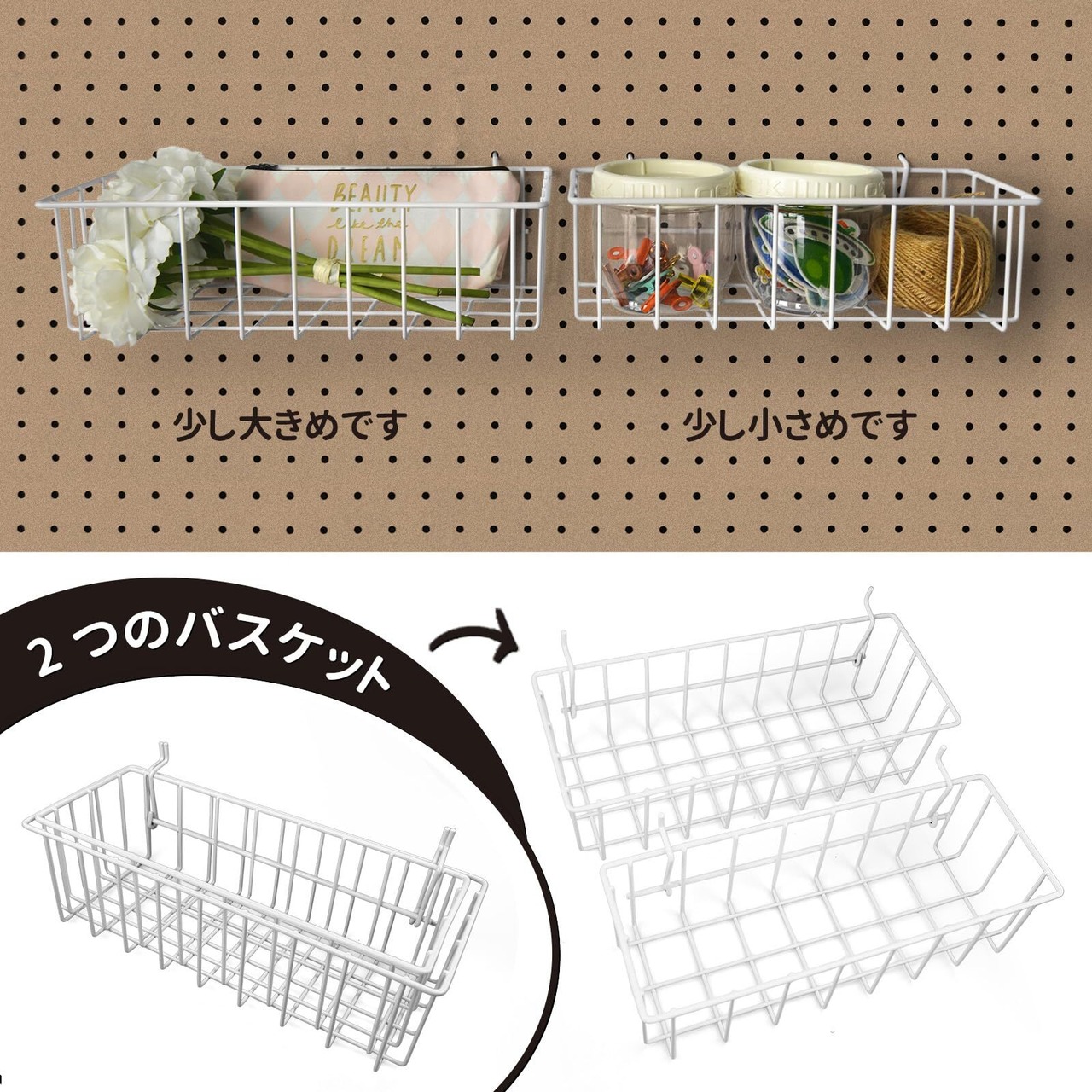 有孔ボードバスケット パンチングボード用カゴ棚 有孔ボード用カゴ棚 パンチングボード 用小物入れ 有孔ボードアクセサリー ペグボードバスケット ワイヤーバスケット 収納ケース スチールボックス シェルフバスケット かご キッチン収納ボックス 小物入れ ホック付き リビング 積み重ねでき シンプル 整理収納ボックス ガレージ 作業台 キッチン 店舗 学校 工具小屋 倉庫 (ホワイト)
