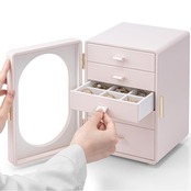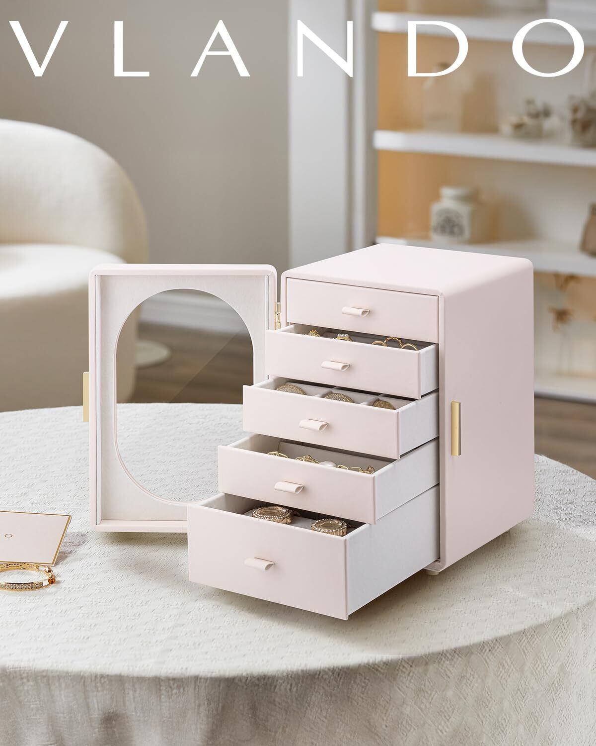 「Vlando 大容量 ジュエリーボックス」は、エレガントなピンク色とガラス窓のデザインが魅力的です。どんなインテリアにもマッチし、部屋の雰囲気を一層引き立てます。あなたの大切なジュエリーを美しく収納するための理想的なアイテムです。