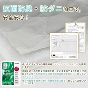 衛生面に配慮した抗菌、防臭、防ダニ加工が施されており、敏感な肌の方でも安心してご使用いただけます。特にアレルギーが気になる方におすすめのアイテムです。