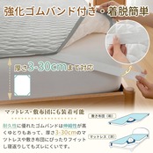 【着脱簡単・ズレにくい】四隅には強化ゴムバンド付き、ベッド・マットレス・敷き布団にぴったりフィットします。しっかり固定して、お洗濯の際の着脱も簡単で、ズレにくく、寝返りしても大丈夫です。マットレスの厚さは25cmまで対応、200cm丈の敷き布団でもお使いいただけます。