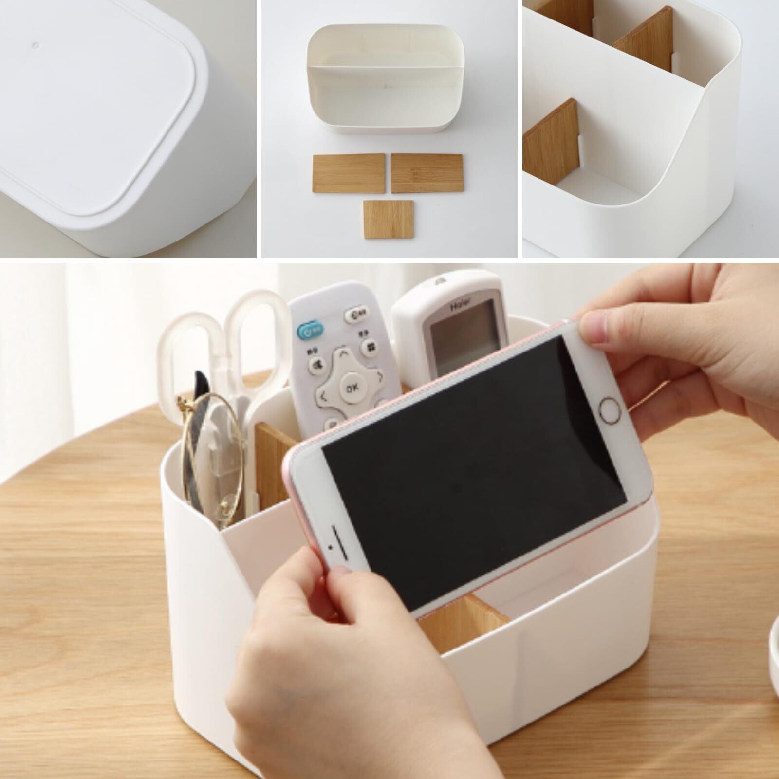 DIZLAS リモコンラック 卓上収納 文房具収納 ペン立て 小物入れ コスメ 化粧品収納ボックス 仕切り ホワイト