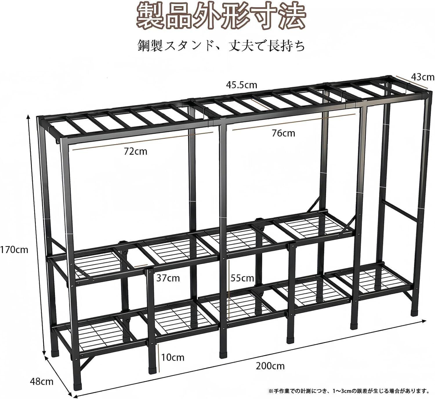 業務用レベルの耐久構造:冷間圧延スチールパイプを骨格に採用。28×15mmの角パイプが重量物にもぐらつかない安定感を提供。構造安定で、硬度高いな利点以外に防水防塵で錆付け難い!
