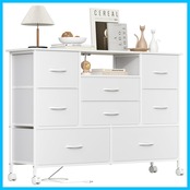 LunarLight チェスト タンス サイズ幅114.5奥行30高さ79㎝ 収納チェスト 収納ケース テレビ台として使用可能 コンセント2口付き ストッパーキャスターによる移動式とアジャスト付き固定式の2機能 頑丈な構造で耐震転倒防止機能を備えている 大容量3段8杯の収納スペース 棚板1枚付き (真っ白)