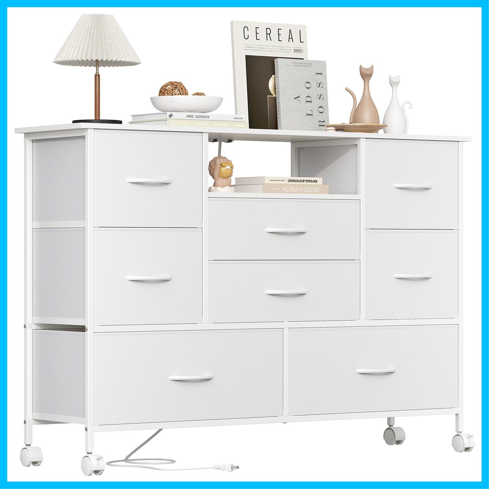 【在庫セール】LunarLight チェスト タンス サイズ幅114.5奥行30高さ79㎝ 収納チェスト 収納ケース テレビ台として使用可能 コンセント2口付き ストッパーキャスターによる移動式とアジャスト付き固定式の2機能 頑丈な構造で耐震転倒防止機能を備えている 大容量3段8杯の収納スペース 棚板1枚付き (真っ白)